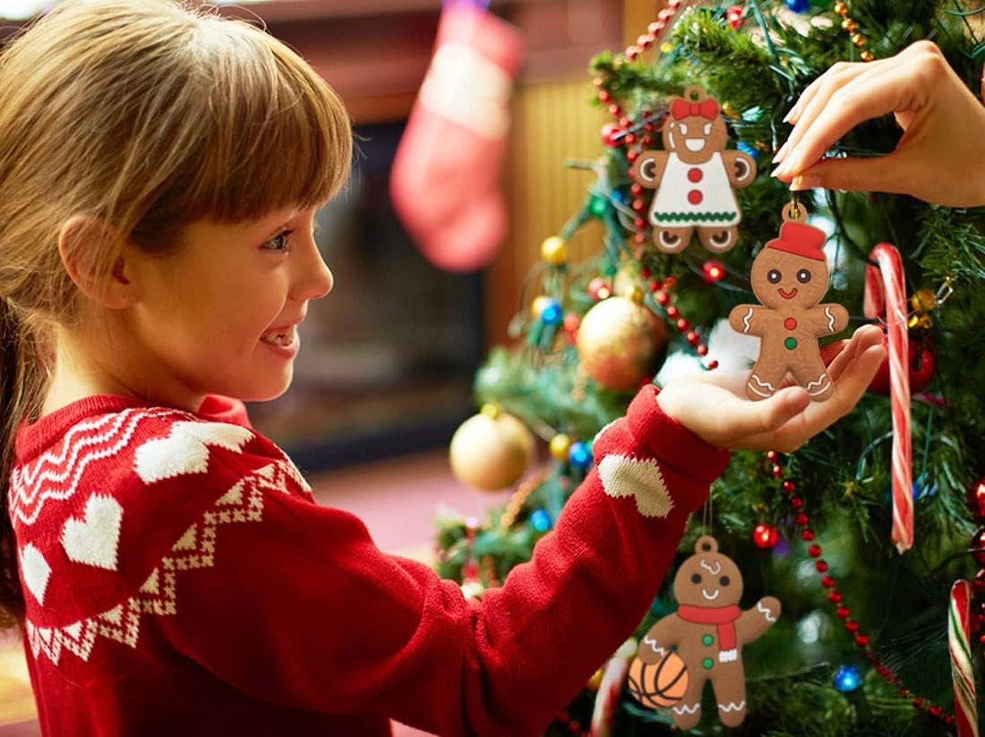 Each gingerbread ornament measures approximately 3 inches in height, ideal for decorating small to medium Christmas trees. The top hole is large enough for the included string to easily thread through, making them excellent gingerbread christmas tree decorations -