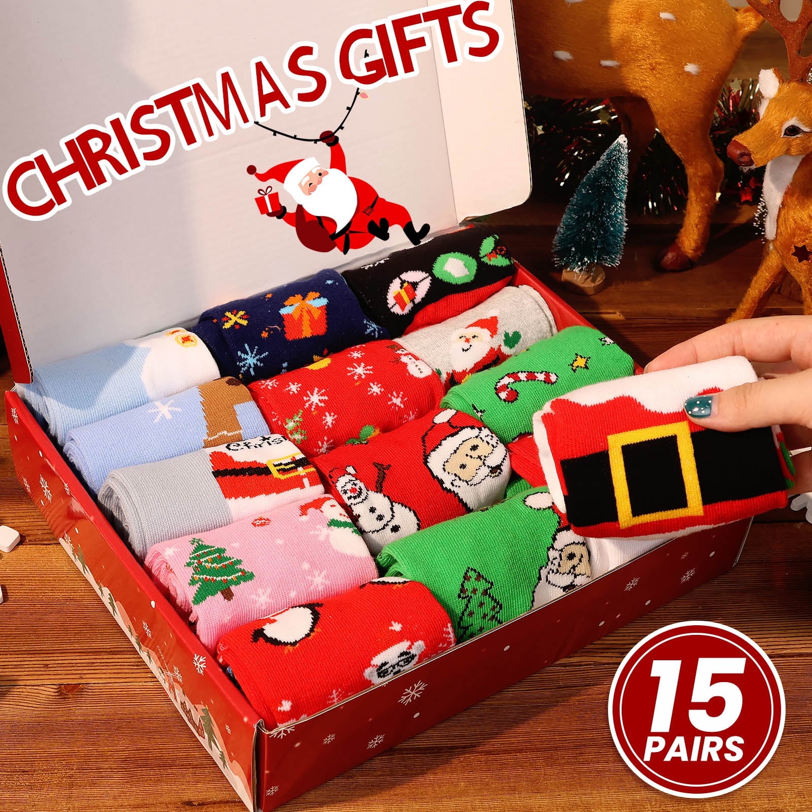 Ayieyill 15 Pairs Women's Christmas Socks Gifts for Women Adults Family Coworkers Cotton Holiday Socks Stocking