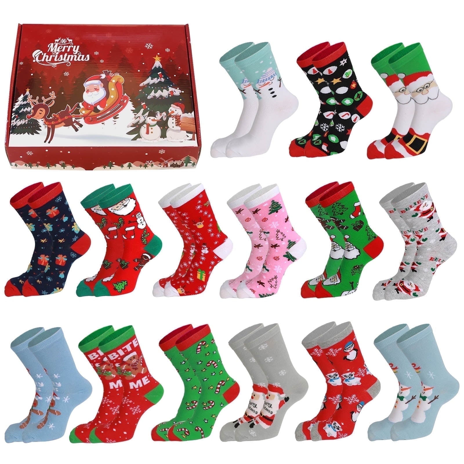 - SUPER VALUE PACK. Christmas Holiday Socks Set for Xmas Present w/ Printed Fun Colorful designs includes 15 pairs of socks in 15 different vivid and fashion christmas graphic designs
