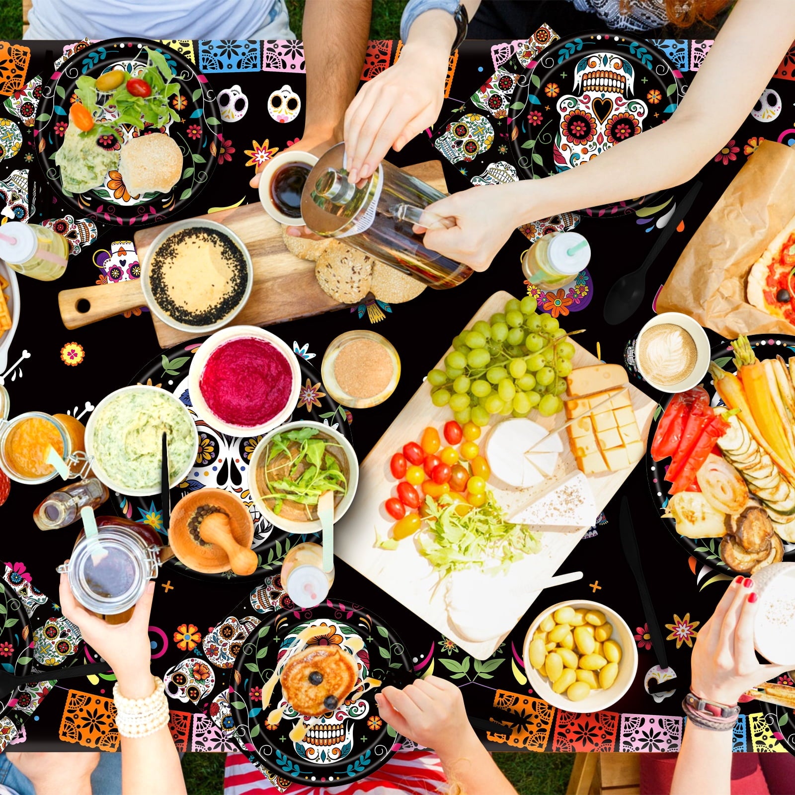 Celebrate in style with this all-in-one 170-piece party decorations kit from Ayieyill. Each set includes themed paper plates, cups, napkins, and plastic utensils to serve up to 24 guests. A matching banner and waterproof tablecloth complete the look for a coordinated and festive party table. Whether you're planning a birthday bash, holiday party, or themed celebration, this kit makes setup easy and cleanup even easier. Perfect for day of the dead party supplies, dia de los muertos decorations, this set is designed to bring vibrant style and convenience to your special day.