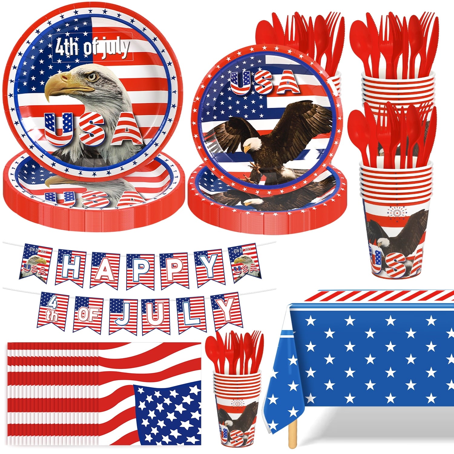 - SUPER VALUE PACK: Ayieyill 170pcs Party Supplies set includes 24 pcs 8.9" paper plates, 24 pcs 7" dessert plates, 24 pcs 9 oz paper cups, 24 pcs napkins, 24 pcs plastic forks, 24 pcs plastic knives, 24 pcs plastic spoons, 1 pcs themed banner and 1 pcs 53.7*108.8" tablecloth.