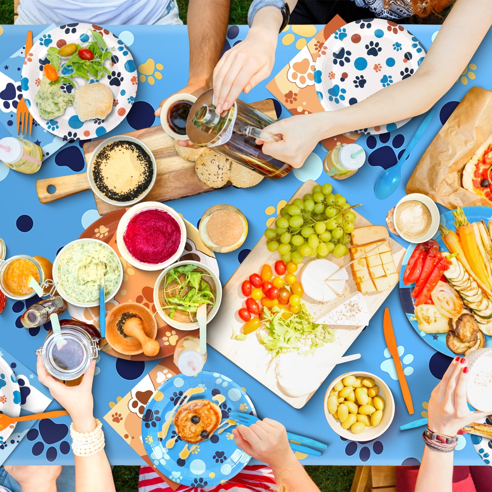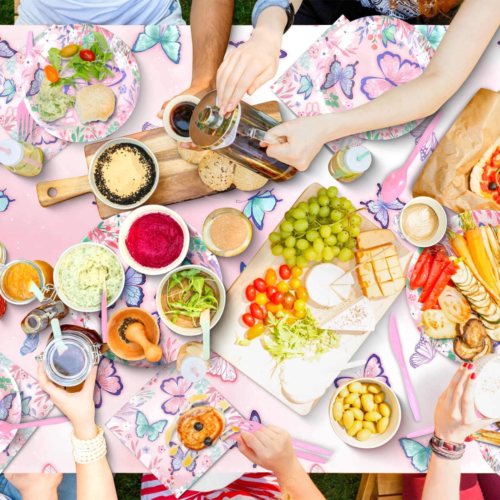 - SAVE YOUR TIME: These disposable tableware and waterproof tablecloth can save you from the hassle of cleaning spills and washing up during the party, allowing you to spend more quality time with family and friends.