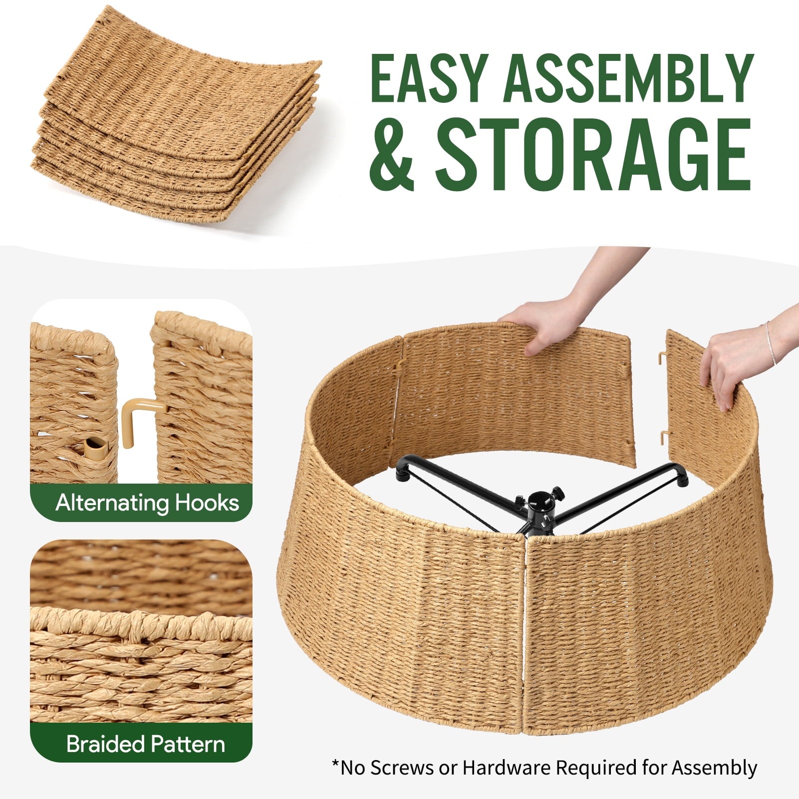 - Easy Assembly: Christmas tree stand built with alternating hooks and receivers for a sturdy construction with minimal gaps, can assemble by hand with no effort , easy handling, greatly save storage space.