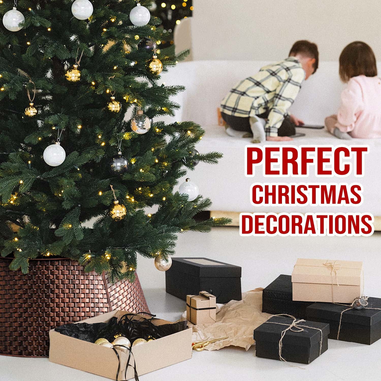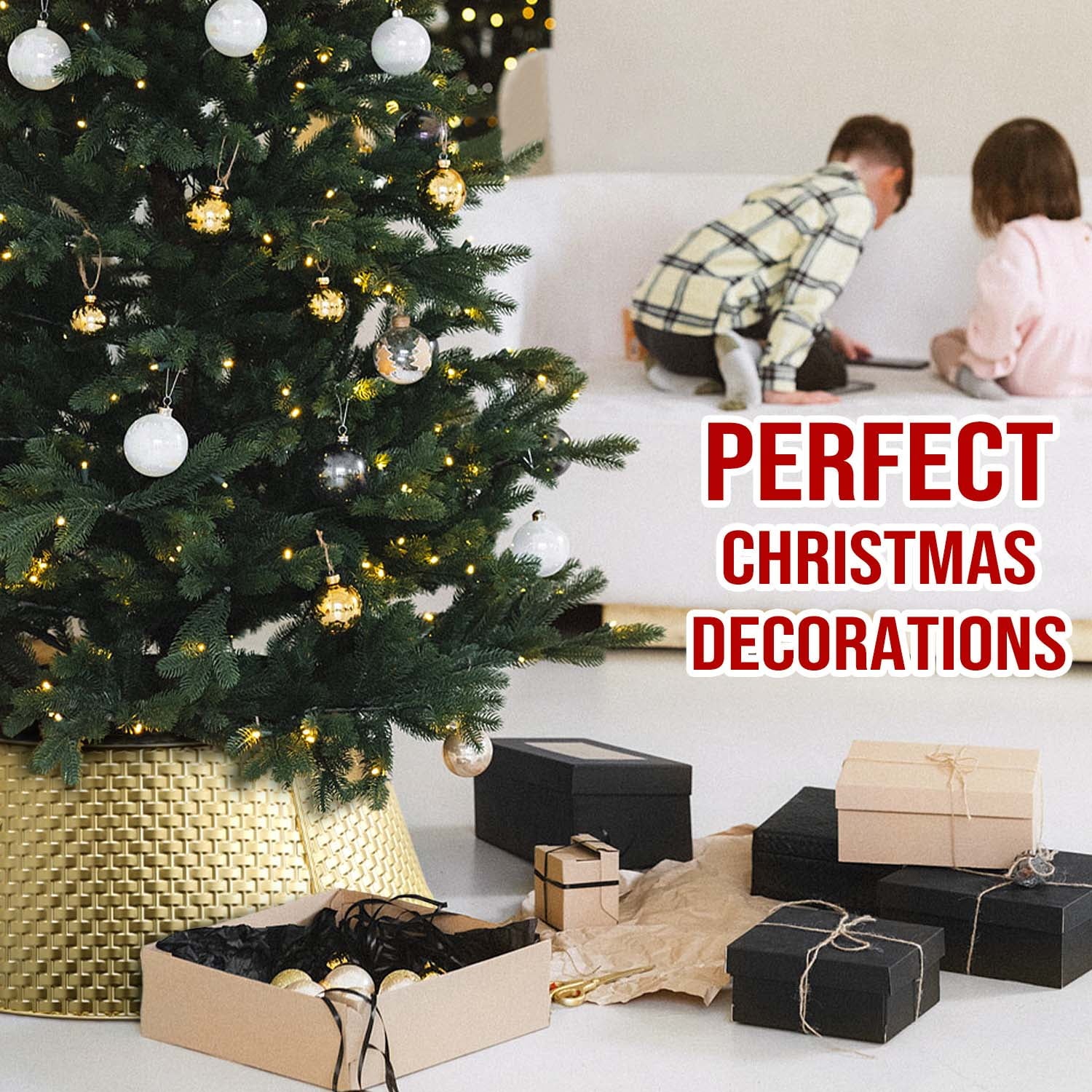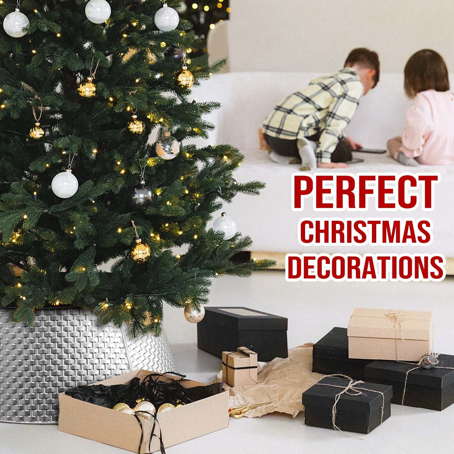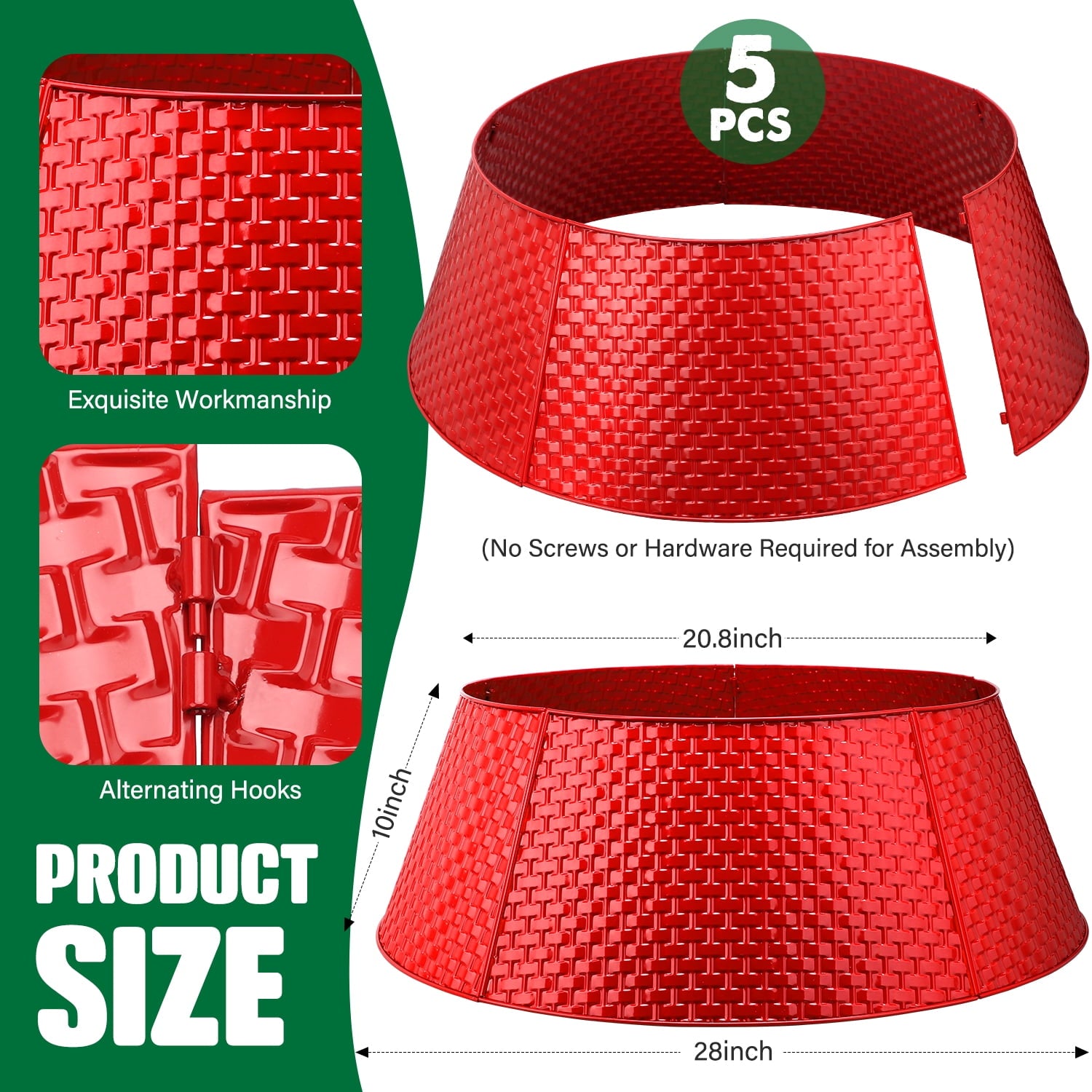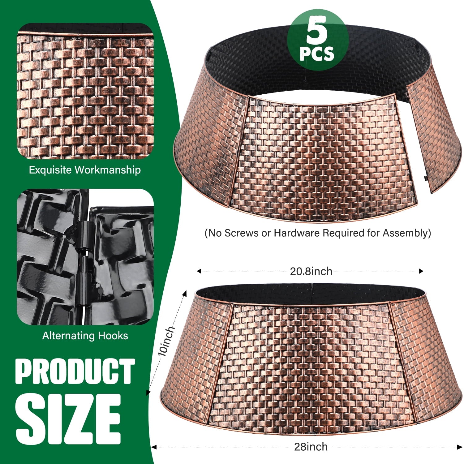 Unique interlocking design ensures the collar doesn't fall apart, composed of 5 separate pieces that come together seamlessly. It not only adds decorations to your Christmas tree but also ensures stability. This collar is designed for trees 21 inches in diameter and under.Large size ensures coverage of most Christmas trees.Made from durable rattan, this collar is built to last. It's not just a decoration but an investment for many Christmases to come.