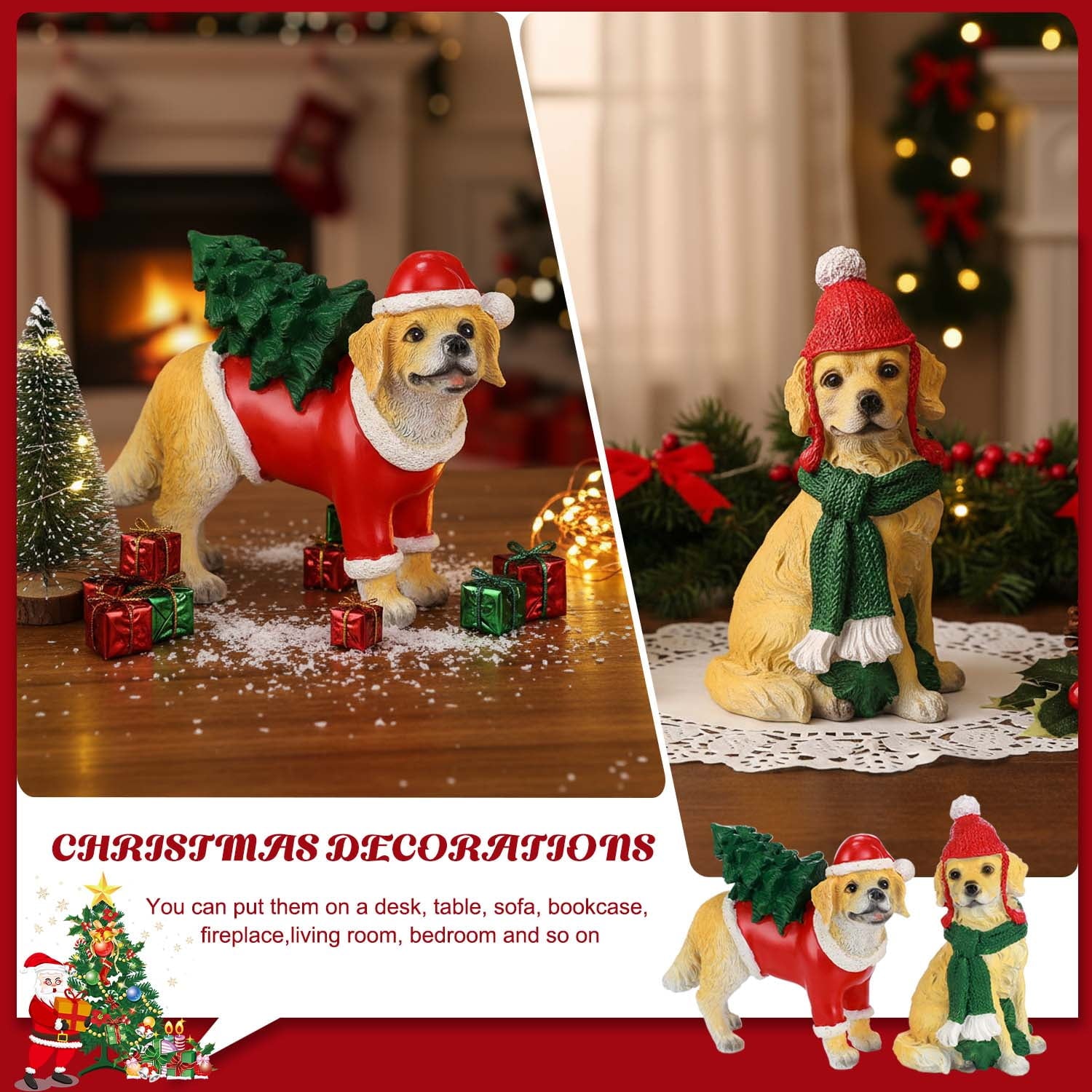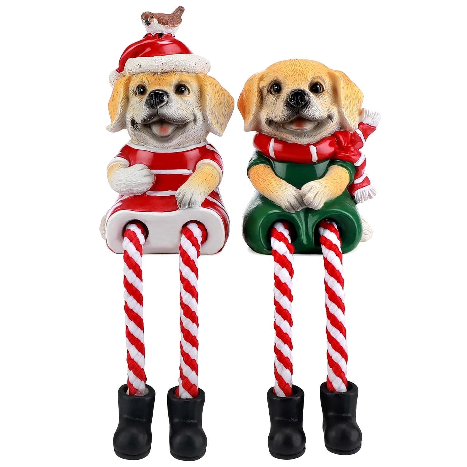 Ayieyill 2pcs Christmas Dog Decorations Tabletop Christmas Decor Christmas Holiday Gift for Home