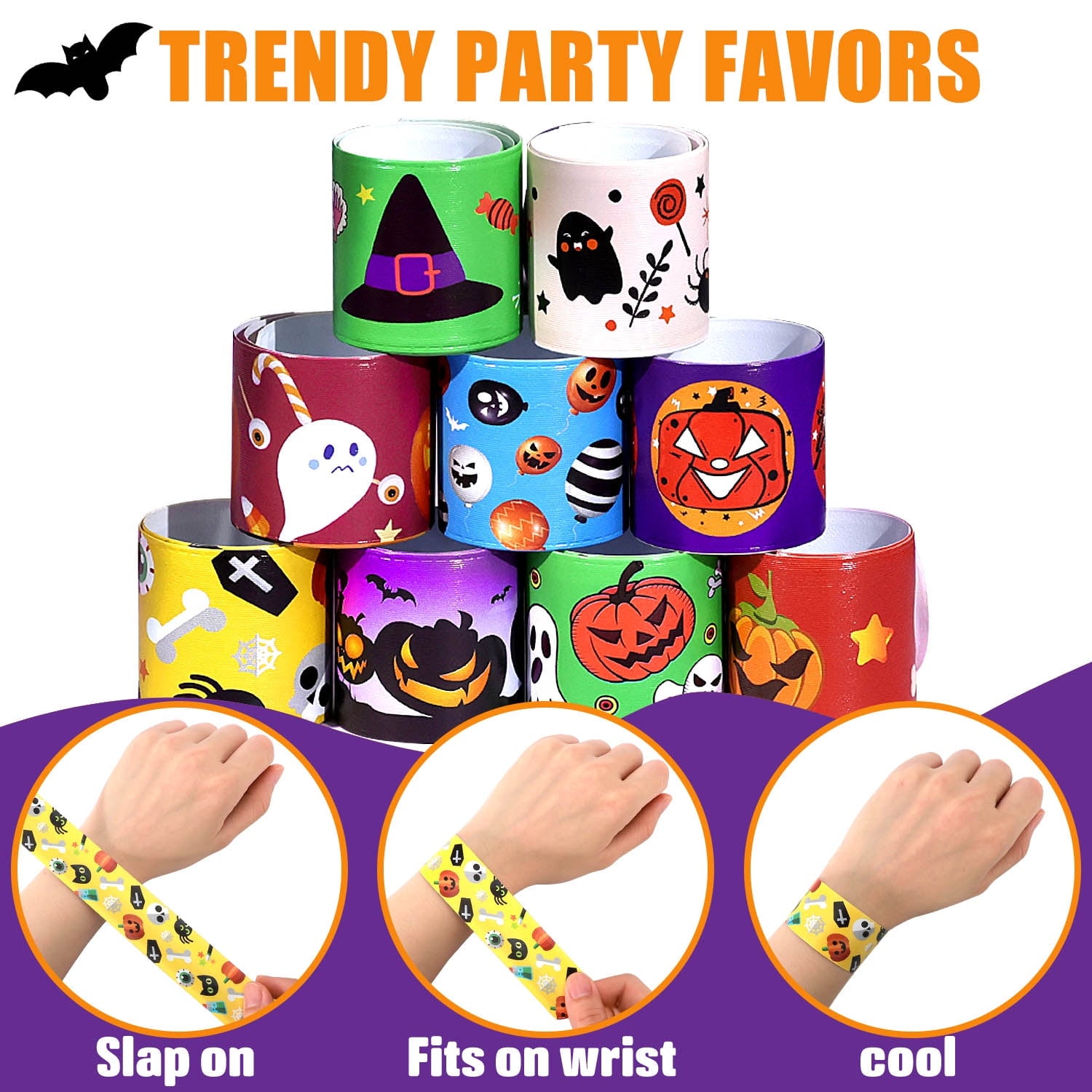 - HALLOWEEN PARTY FAVORS. The slap bracelet sfor kids are great for Halloween Party Favors, Halloween Party Supplies, Halloween Filler, Birthday Giveaways, Game Prizes, Halloween Novelty Toys, Prizes for Students, and Goodie Bags. Get the Halloween slap bracelets for kids, hope them enjoy their Halloween Party.