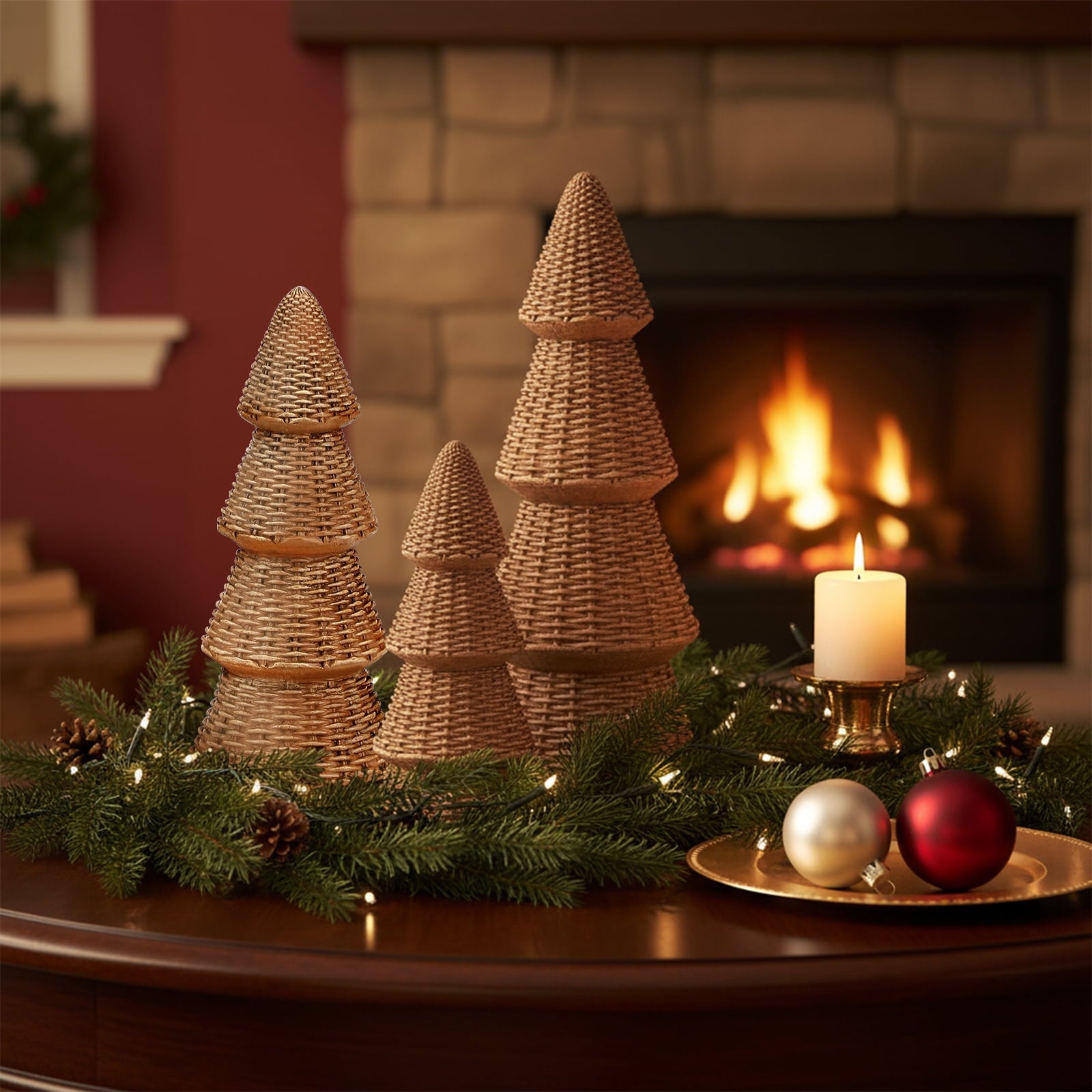 - PERFECT 3-SIZE VARIETY FOR VERSATILE DISPLAY: Includes Small (3″ diameter × 6.2″ tall), Medium (3.9″ × 8.2″ tall), and Large (4.3″ × 10.2″ tall) trees—great for layered, tabletop christmas decor or mantel arrangements