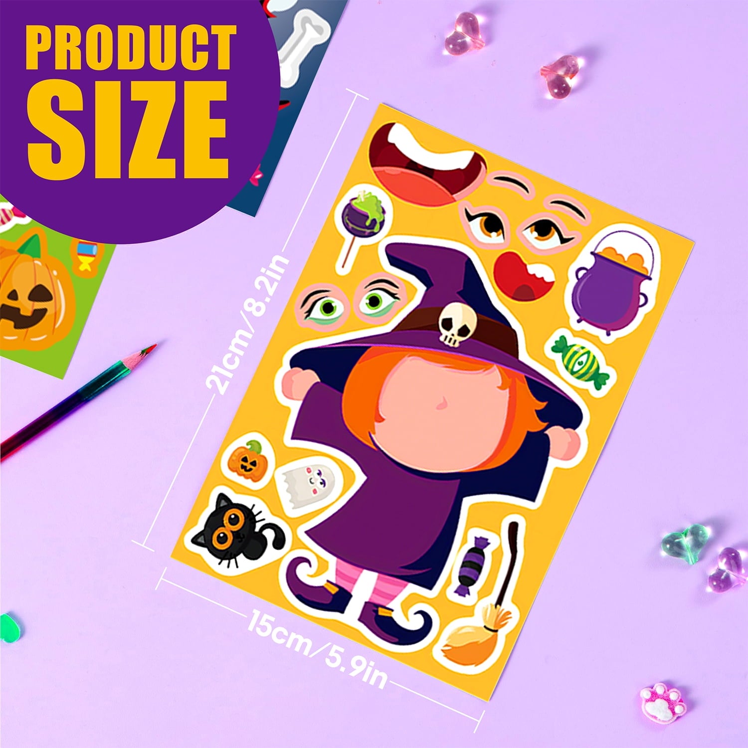 - HALLOWEEN MAKE A FACE FUN: This Halloween sticker pack includes 48 Halloween make a face sticker sheets with witches pumpkins ghosts and monsters offering endless DIY fun for kids during Halloween parties and classroom activities