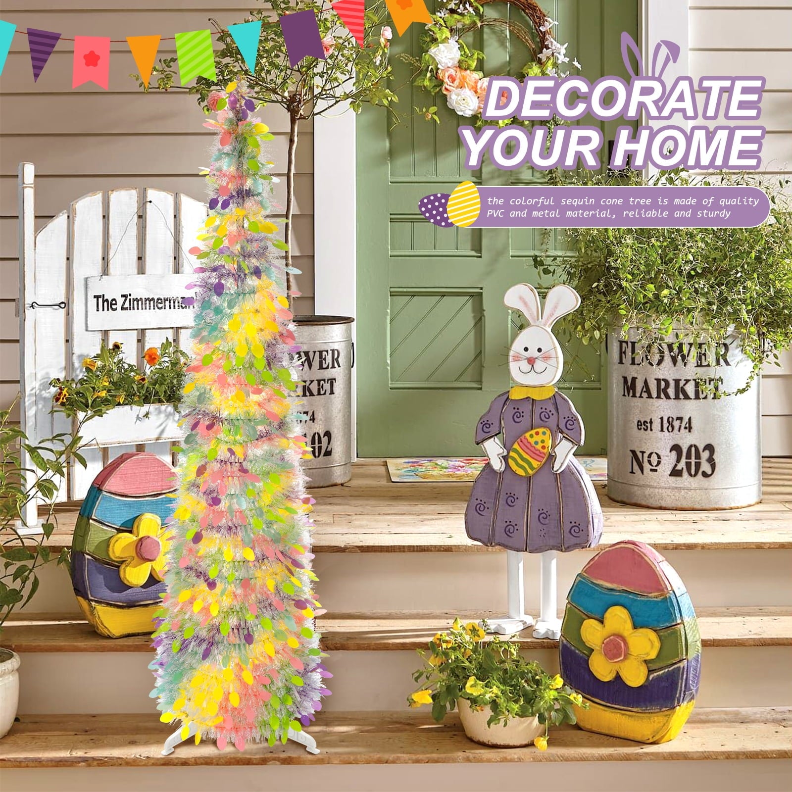 Wide Applications: the colorful tinsel Easter tree is an eye catching addition for living room, bedroom, classroom, office, dorm, porches, fireplace and many other places, which not only bring you a good decorative effect, but also can delight your mood