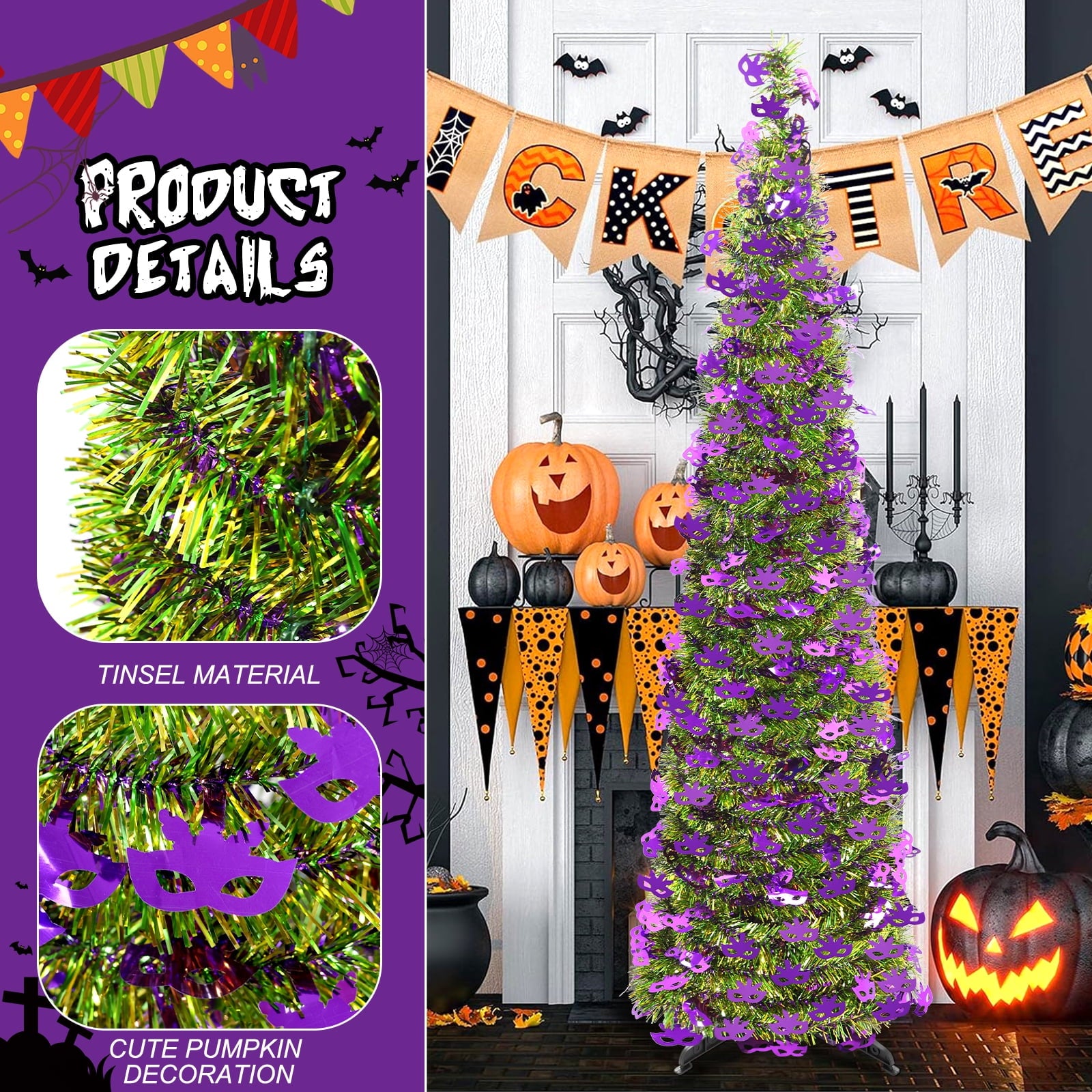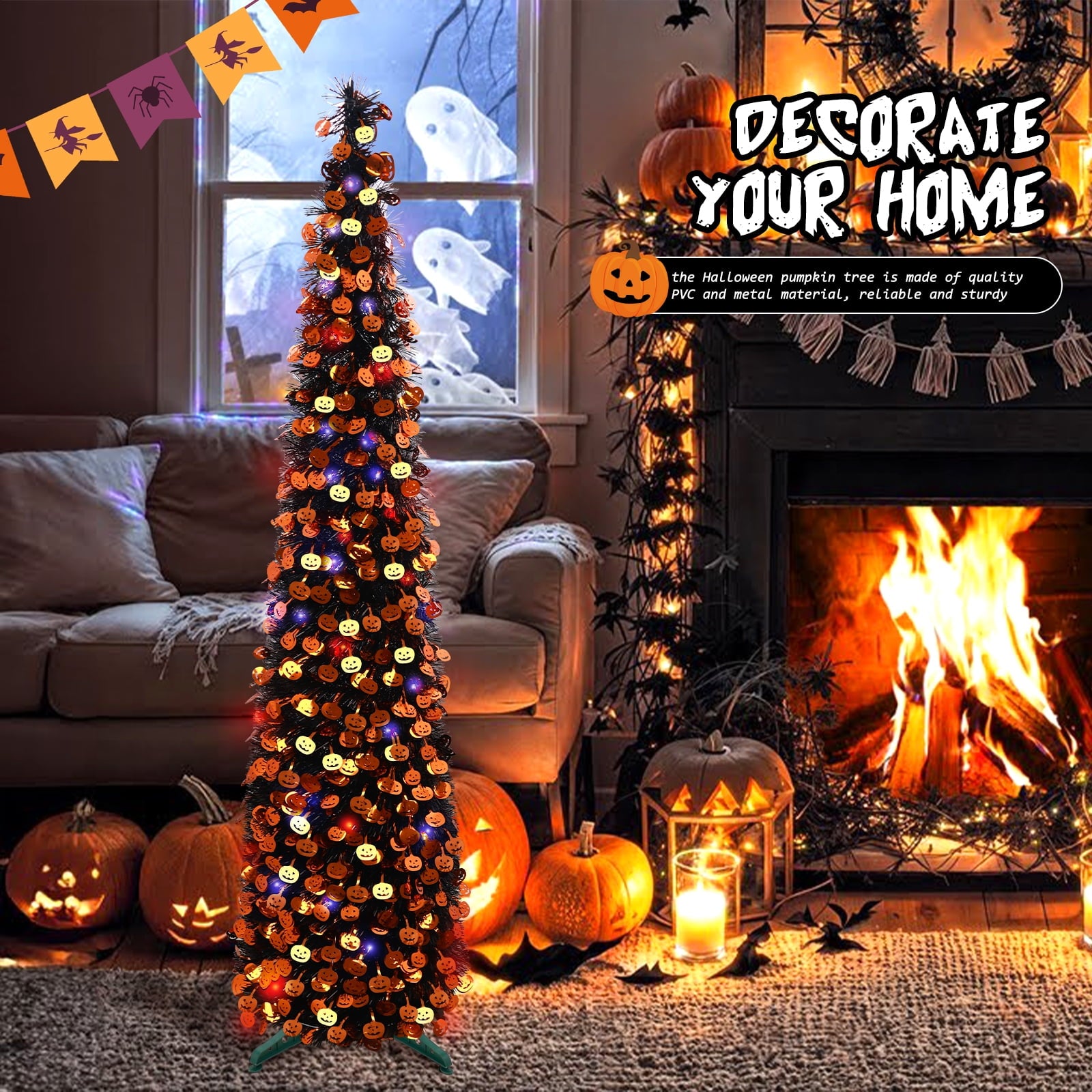 Ayieyill 5ft Halloween Tree Prelit, Pencil Pop up Tree with Light Halloween Decoration | Indoor