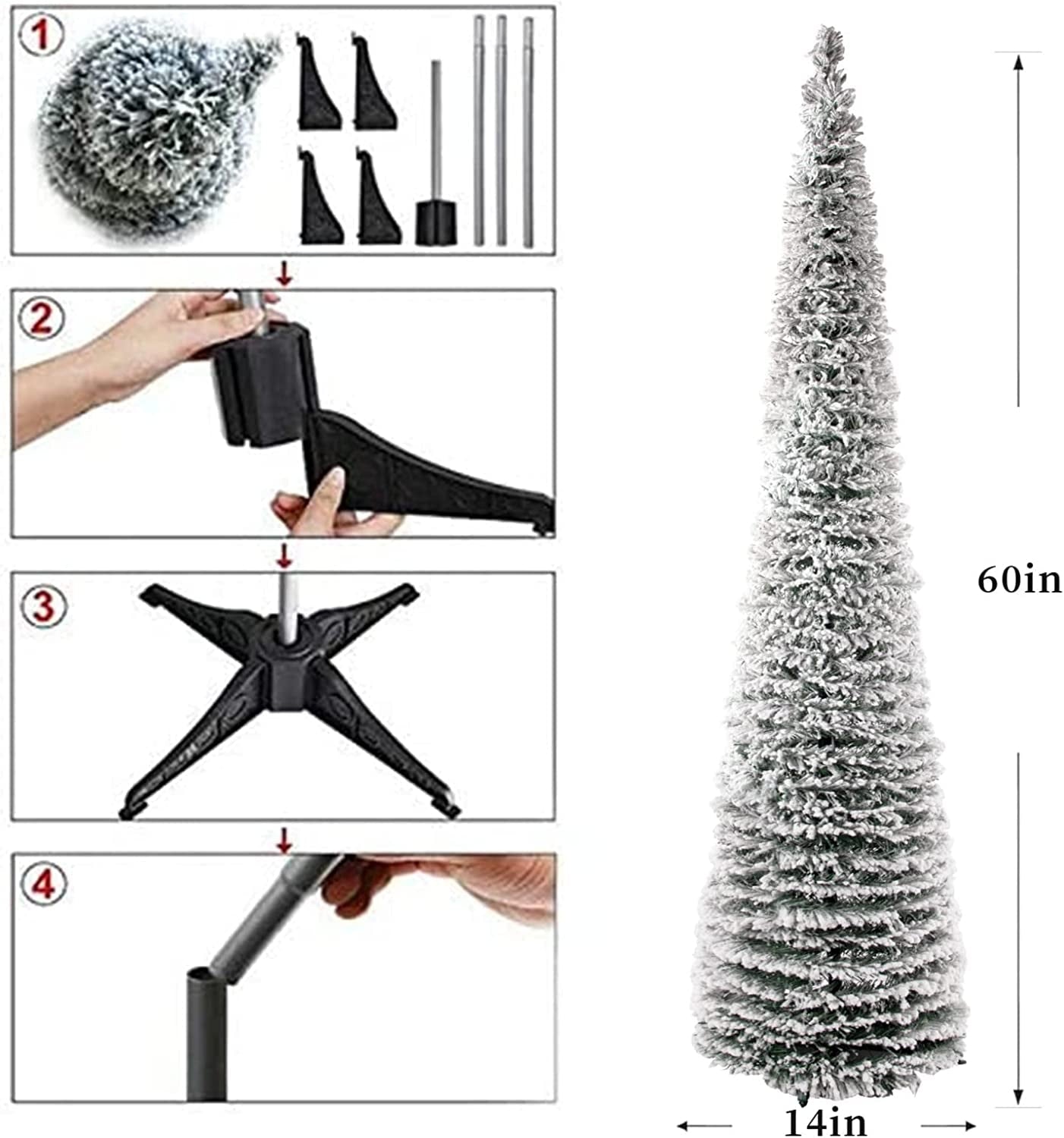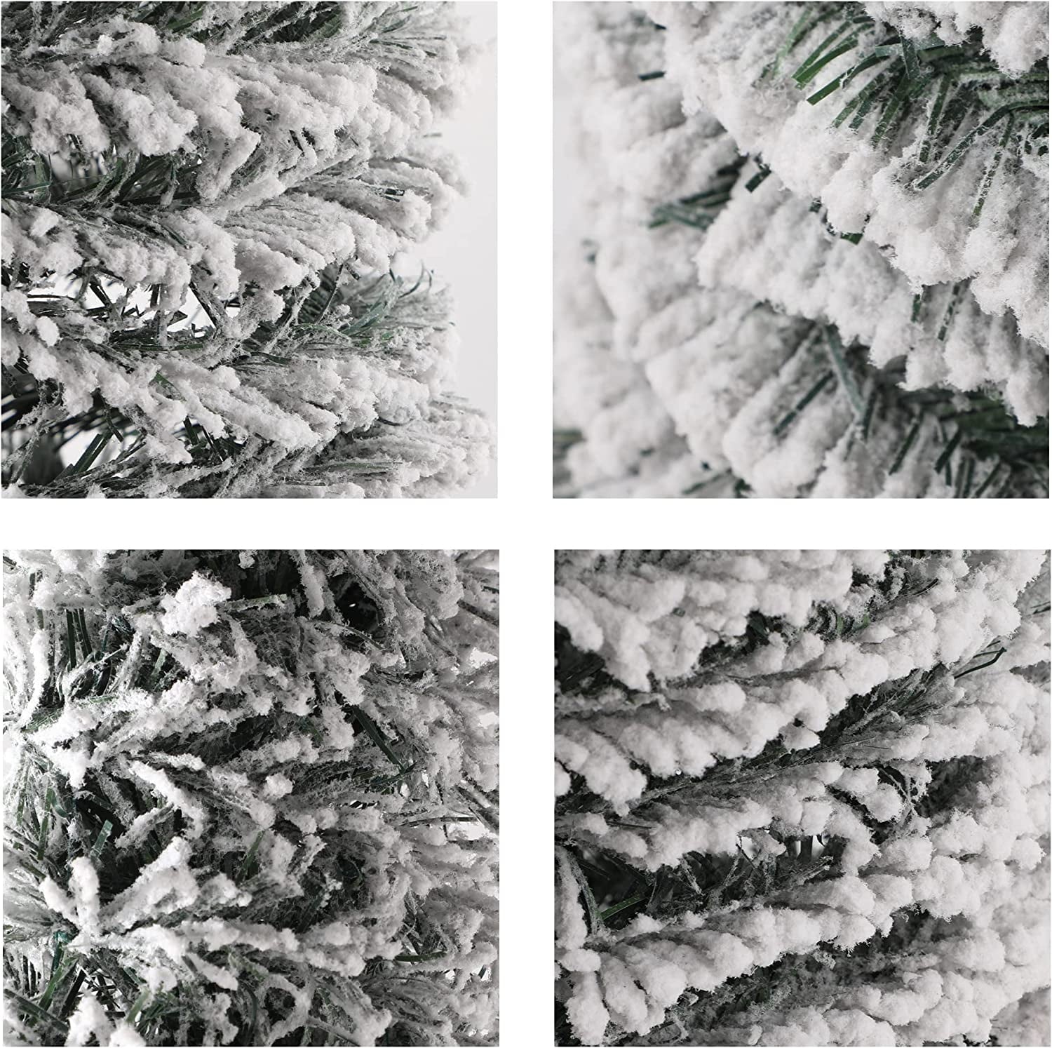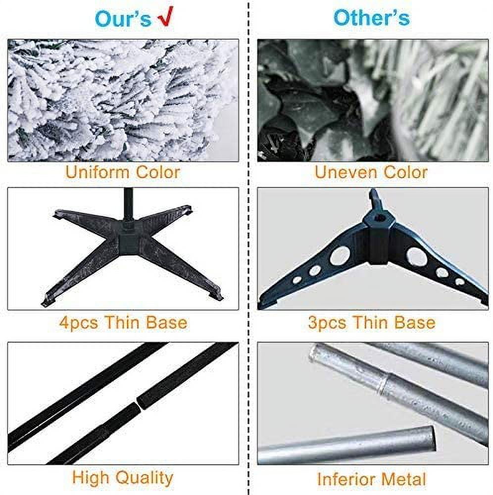 - Upgrade 5ft(1.5meter) Flocked Artificial Christmas Pine Tree: Eco-friendly material foliage covered by pure white snow to create the effect of falling snow. like real. super eye-catching during holiday season.