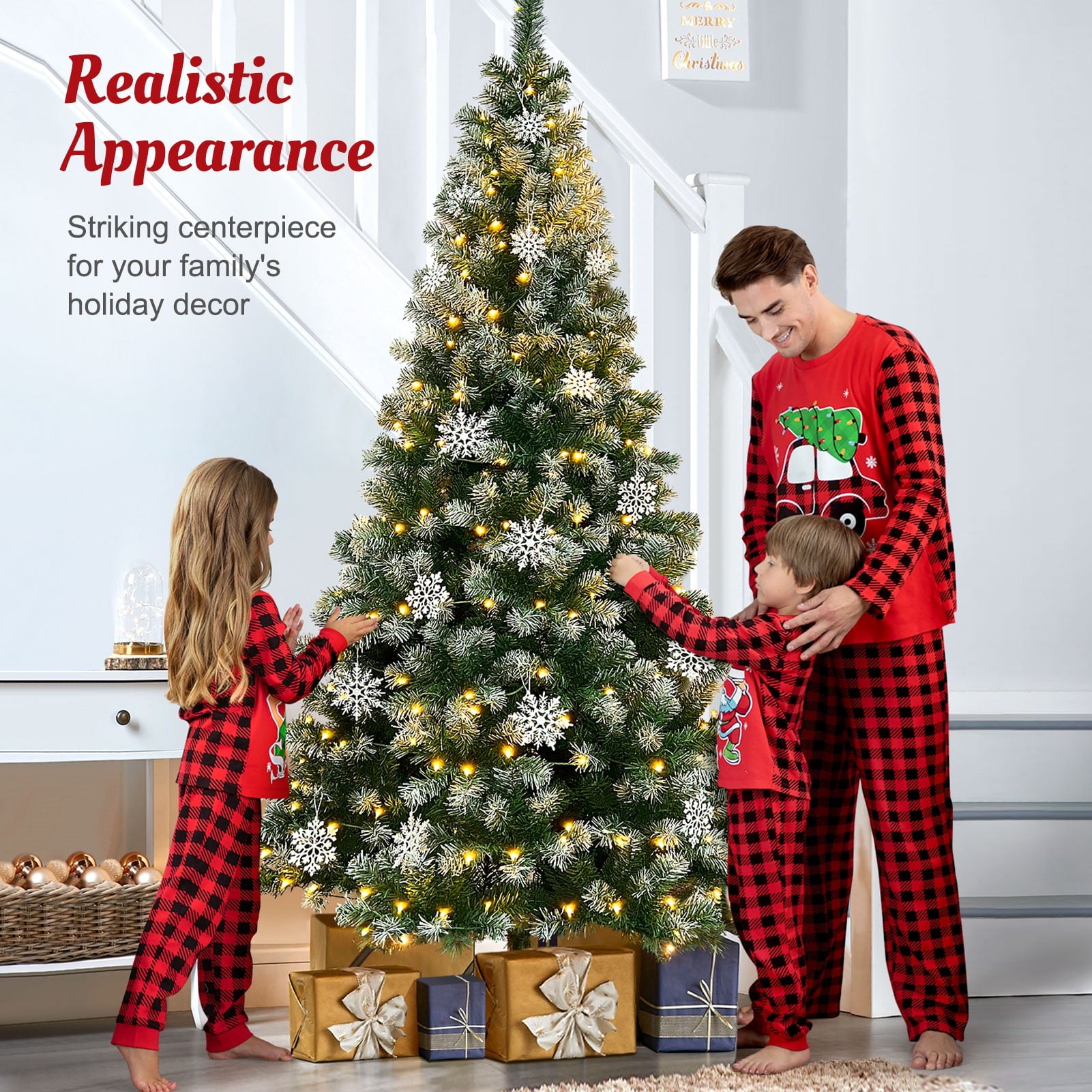 Ayieyill 7.5 ft Pre-Lit Artificial Christmas Tree with 1000 Snow Sprayed Tips 300 LED Lights 36 Snowflakes Ornaments