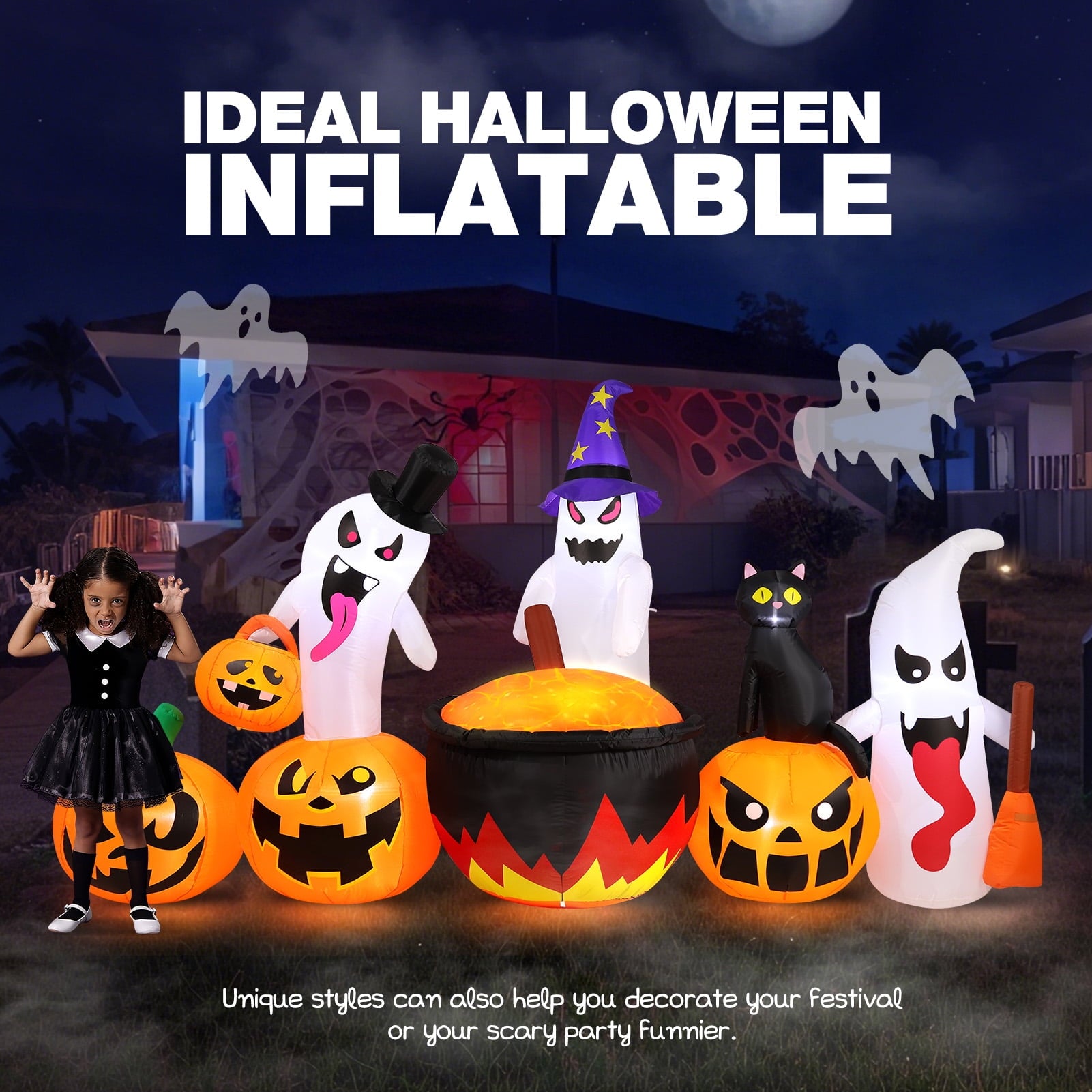 - LIGHT UP YOUR HALLOWEEN NIGHT: The Halloween inflatable decorations with ghost, pumpkins, big flaming vat with LED lights, perfect decoration for your front door, yard, lawn, garden.