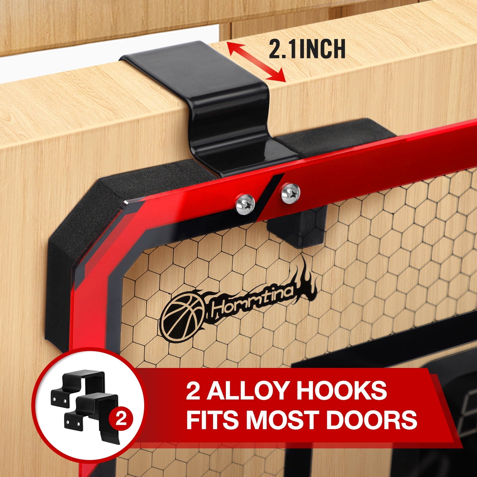 【Easy to assemble, organize and storage】This over door mounted mini Scoring basketball hoop set can be easily hung on the door, suitable for all common sizes of home and office doors.