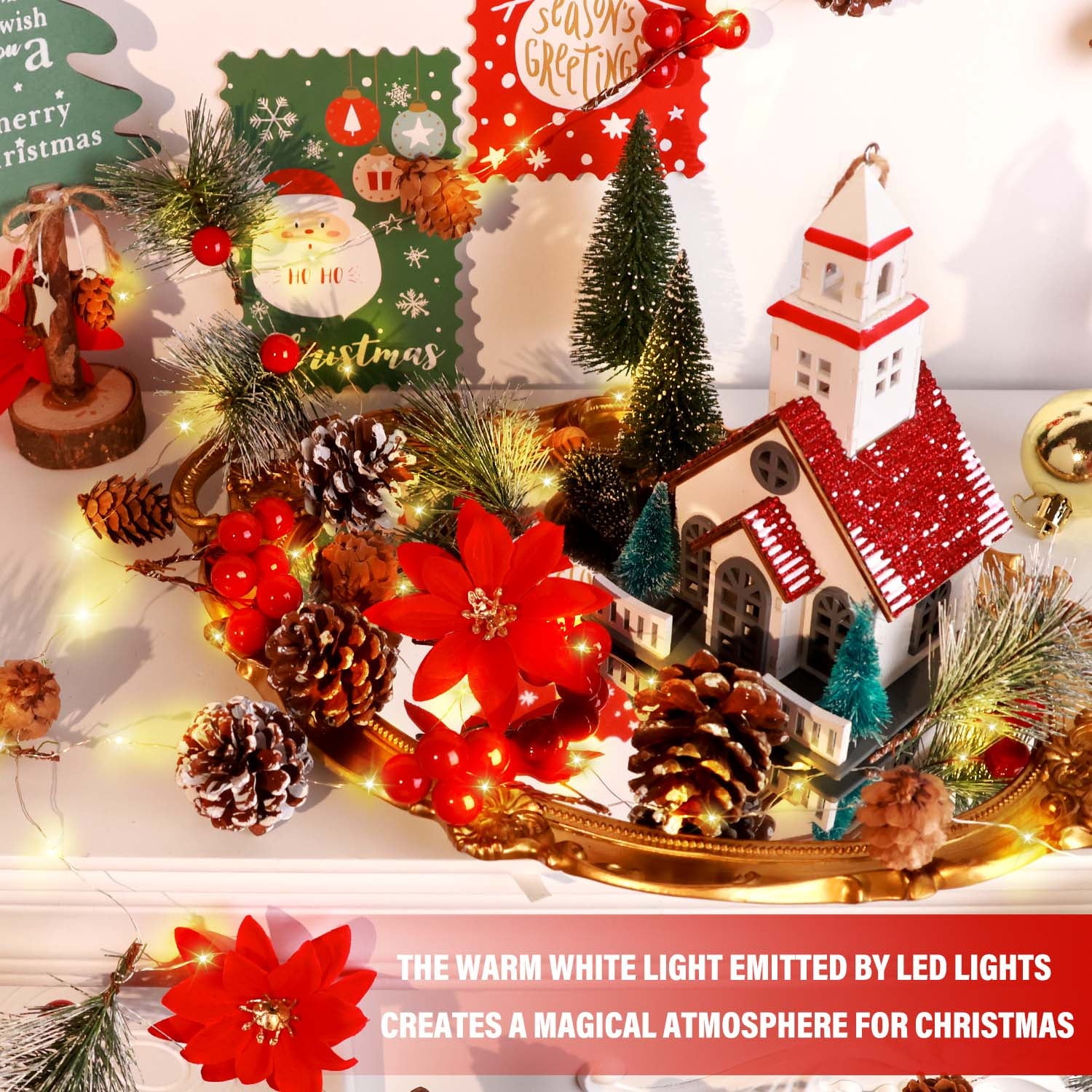Christmas garland with lights constructed with hypoallergenic fire-resistant needles and high quality material. Each pine cone is huge enough, which means a full harvest and achievement in the coming year. In the day time, it will do its job being a string of Christmas berry garland. At night, the led garland string lights will accent any room and generate a warm atmosphere for Christmas decorations indoor.