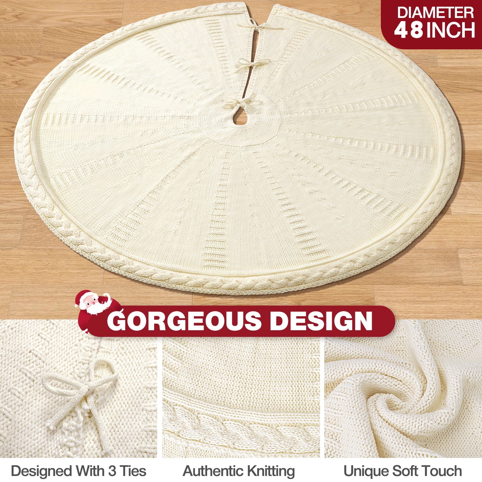 Ayieyill Christmas Tree Skirt, 48 inches White Tree Skirt Luxury Cable Knit Knitted Thick Rustic Xmas Tree Skirt Christmas Decoration, Cream