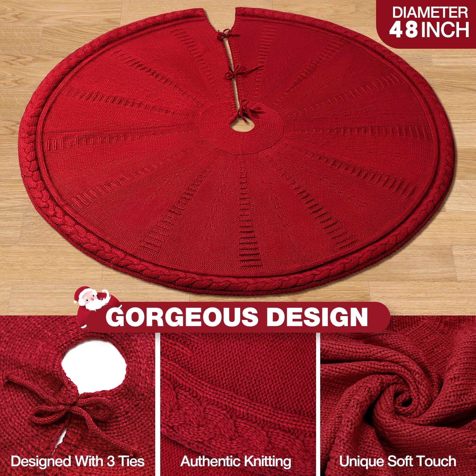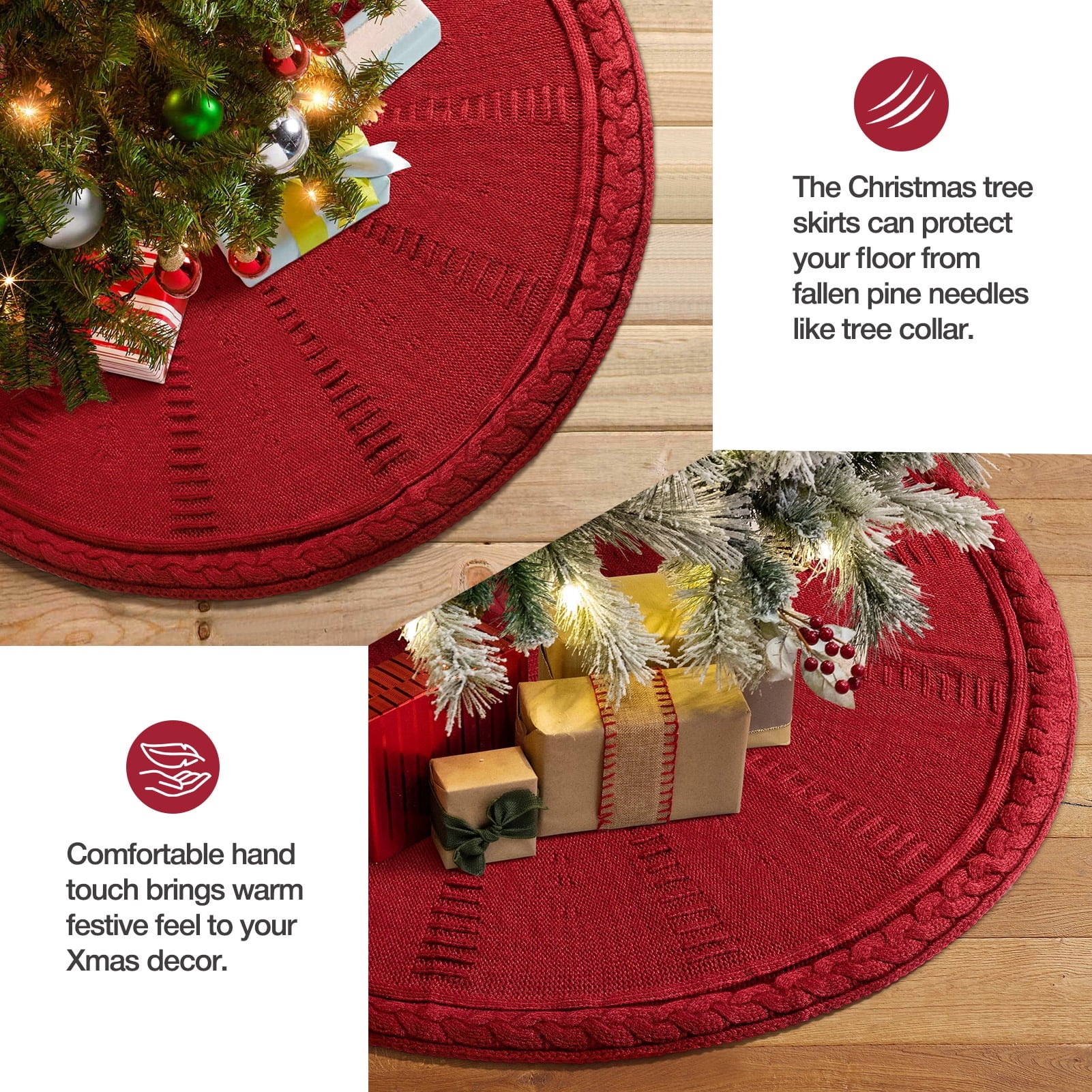 48'' Knitted Christmas Tree Skirt, 48" cable knit edge Christmas tree skirt