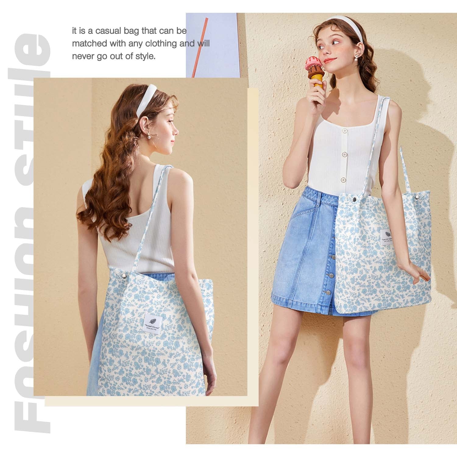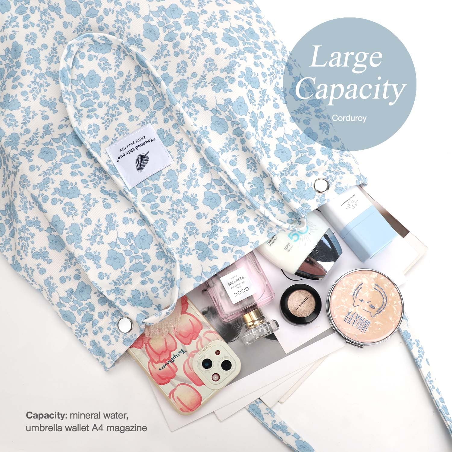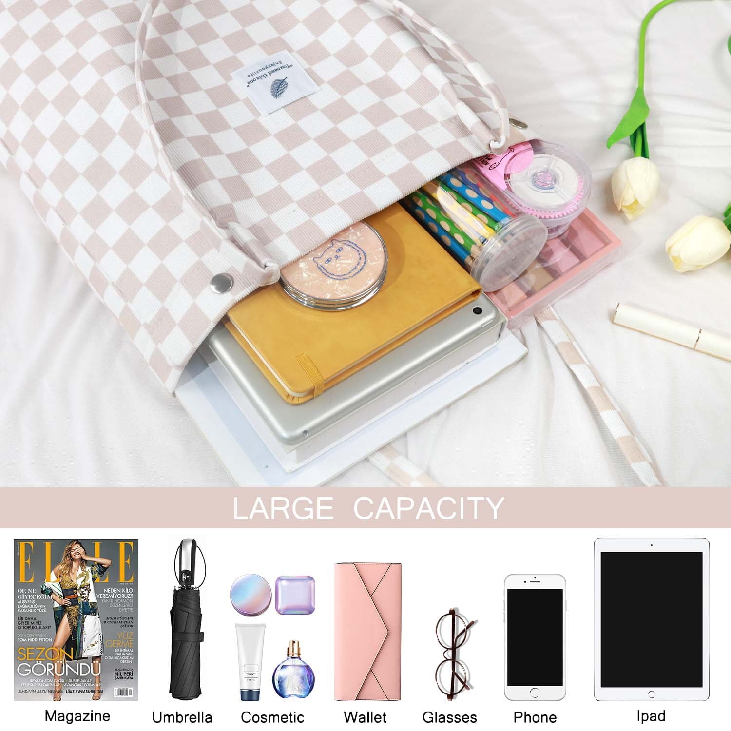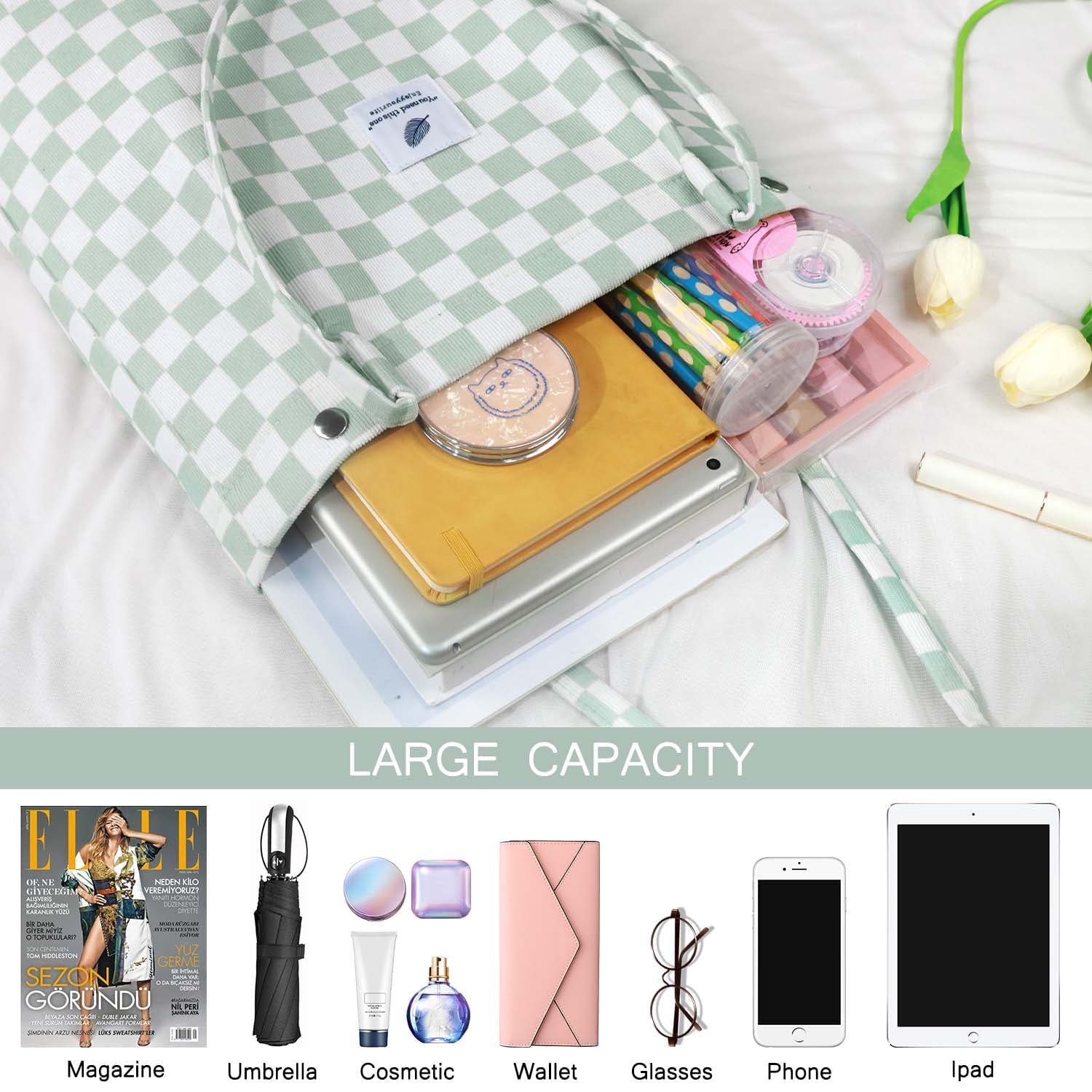 【CORDUROY BAG TOTE STRUCTURE】It has 1 main compartment and 2 internal open slot pockets, cute tote bags aesthetic perfect for holding many your personal items, such as your iPad, cellphone, A4 size magazine,A4 papers, passport, purse, card, makeup,umbrella and so on.