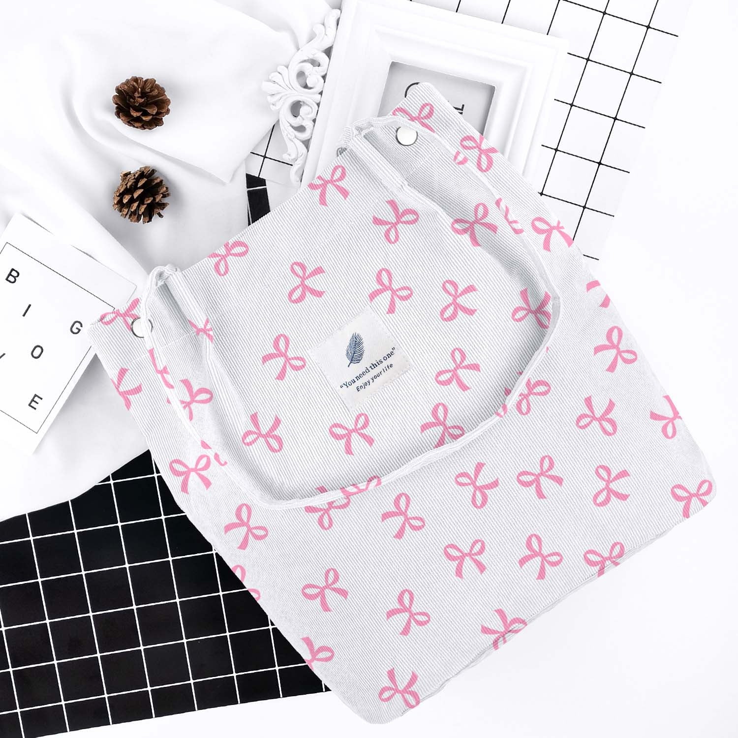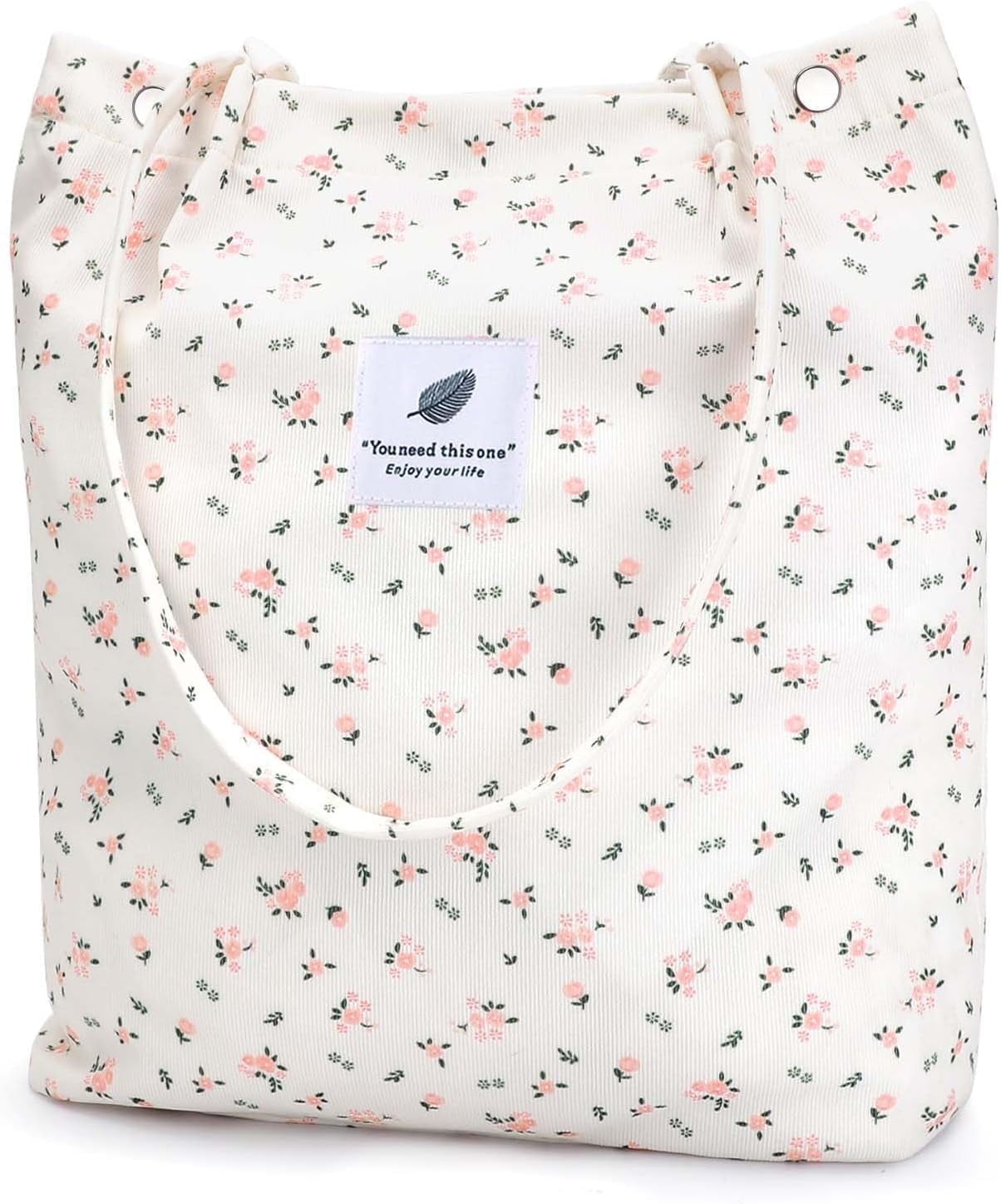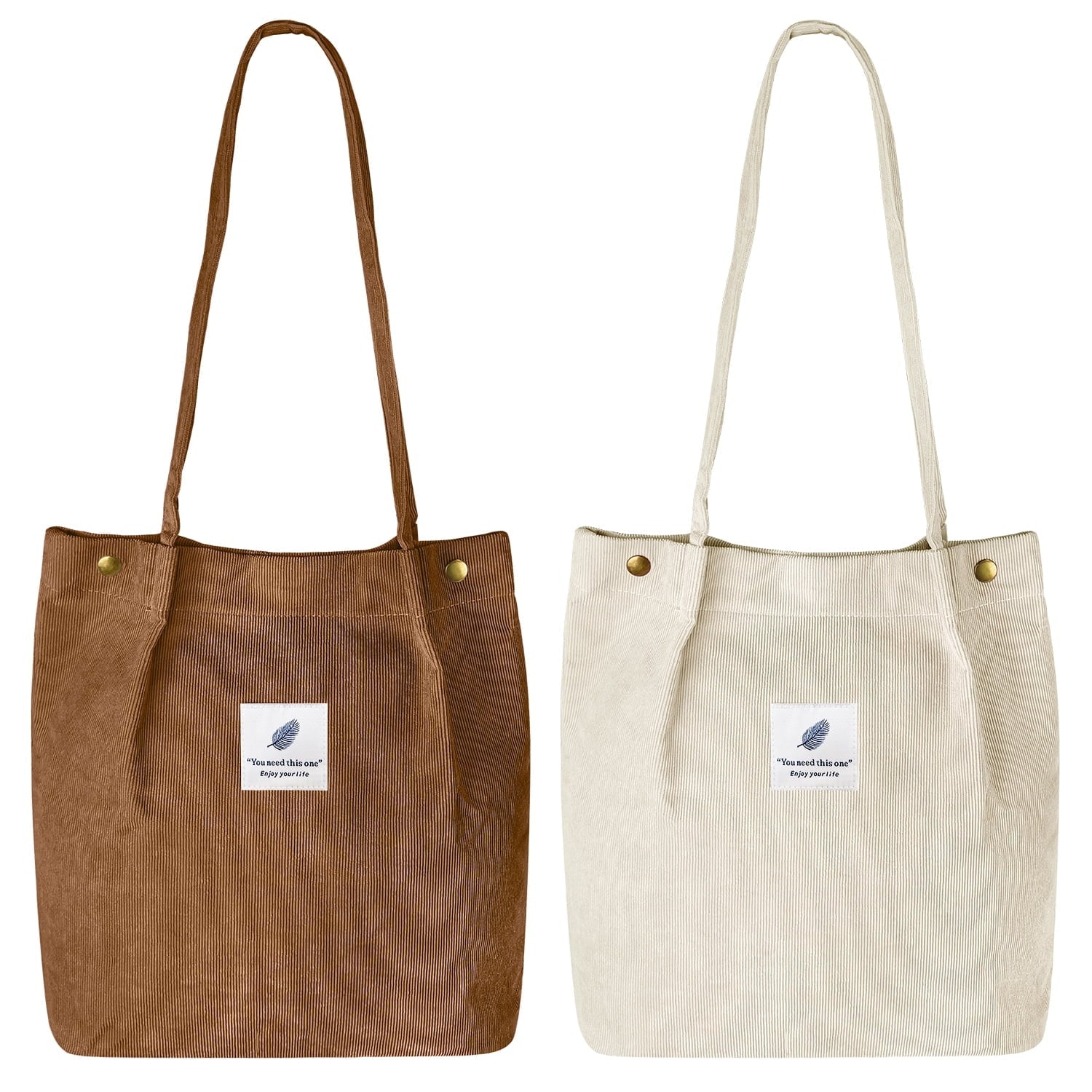 【DIMENSIONS】Cute tote bags size at 13.5" tall x 14.5" wide x 4.3” depth x 11.5" shoulder drop ensure a comfy fit. The space of this corduroy tote bag large is big enough for all of your daily stuffs.Womens tote bags for work also with extra two-pocket design inside create more storage space.
