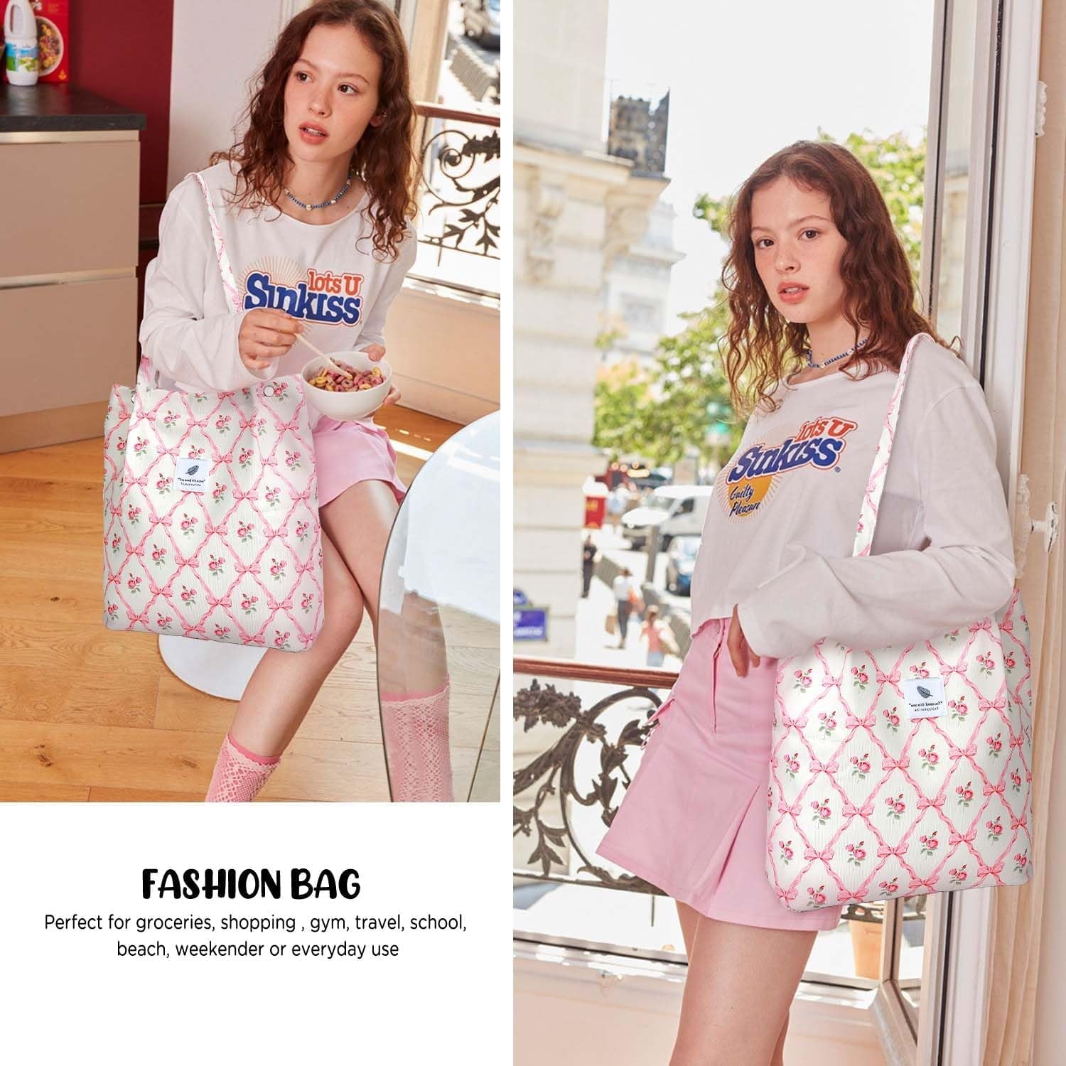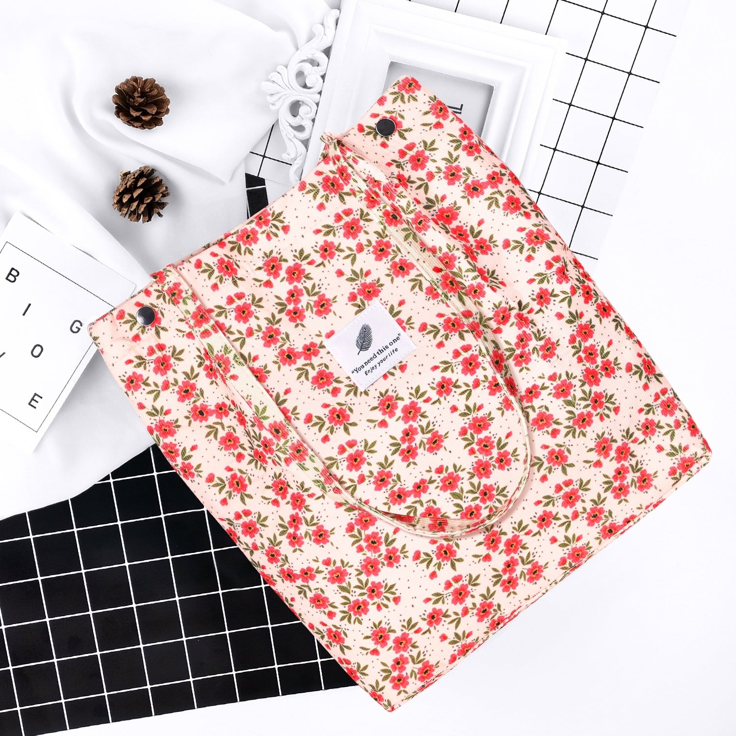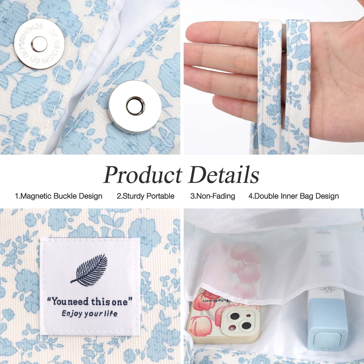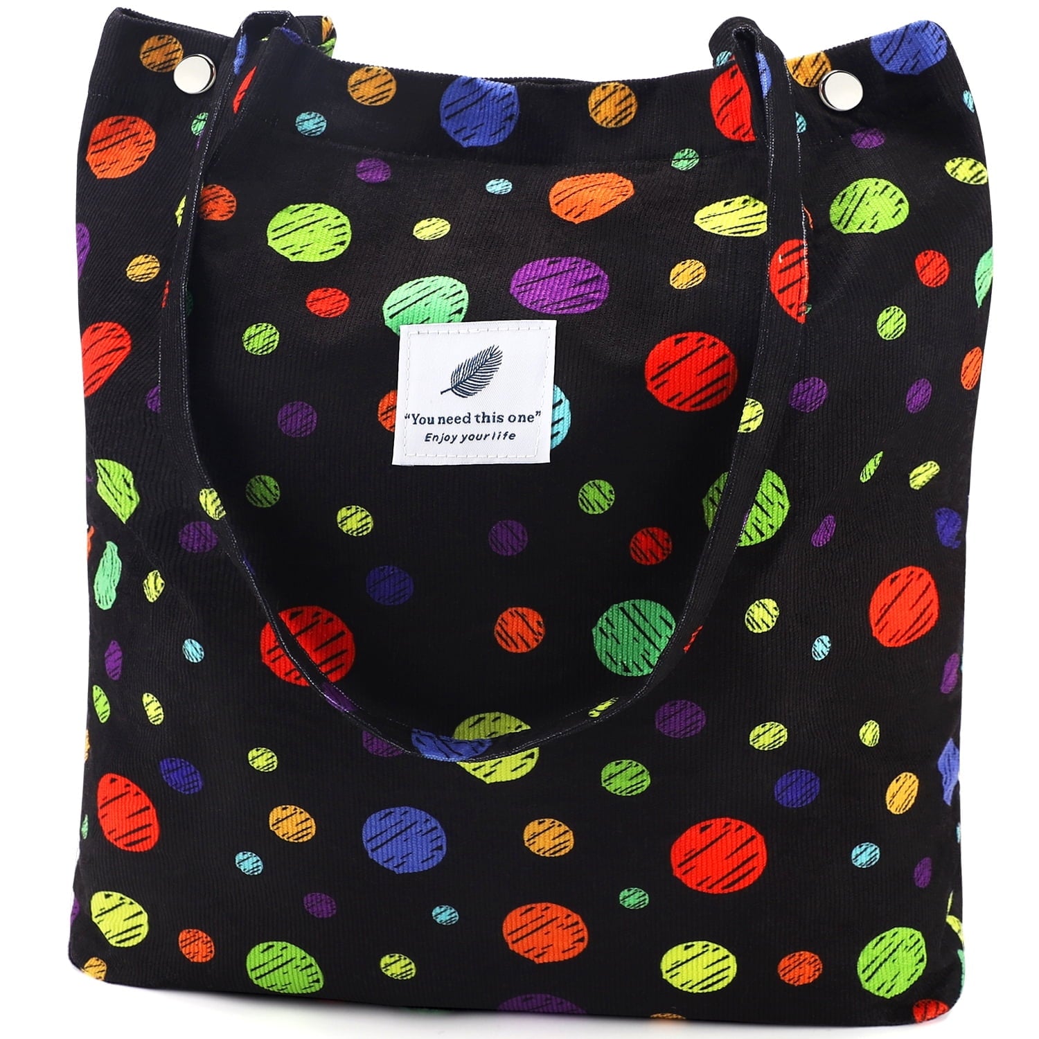 【DIMENSIONS】Cute tote bags size at 13.5" tall x 14.5" wide x 4.3” depth x 11.5" shoulder drop ensure a comfy fit. The space of this corduroy tote bag large is big enough for all of your daily stuffs.Womens tote bags for work also with extra two-pocket design inside create more storage space.