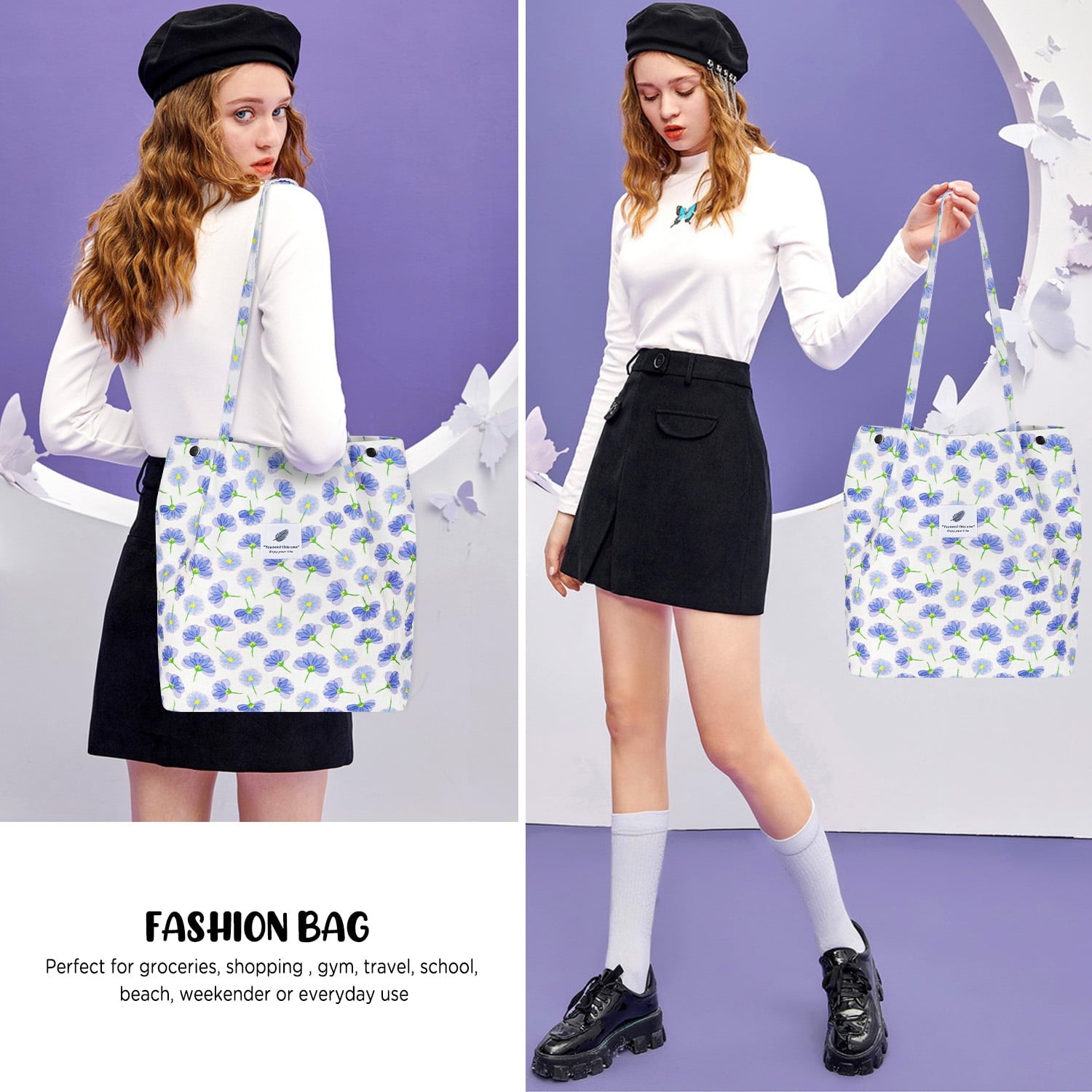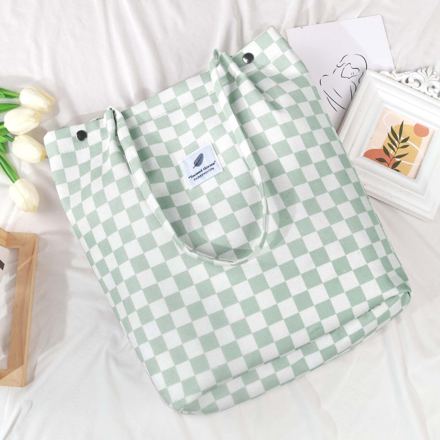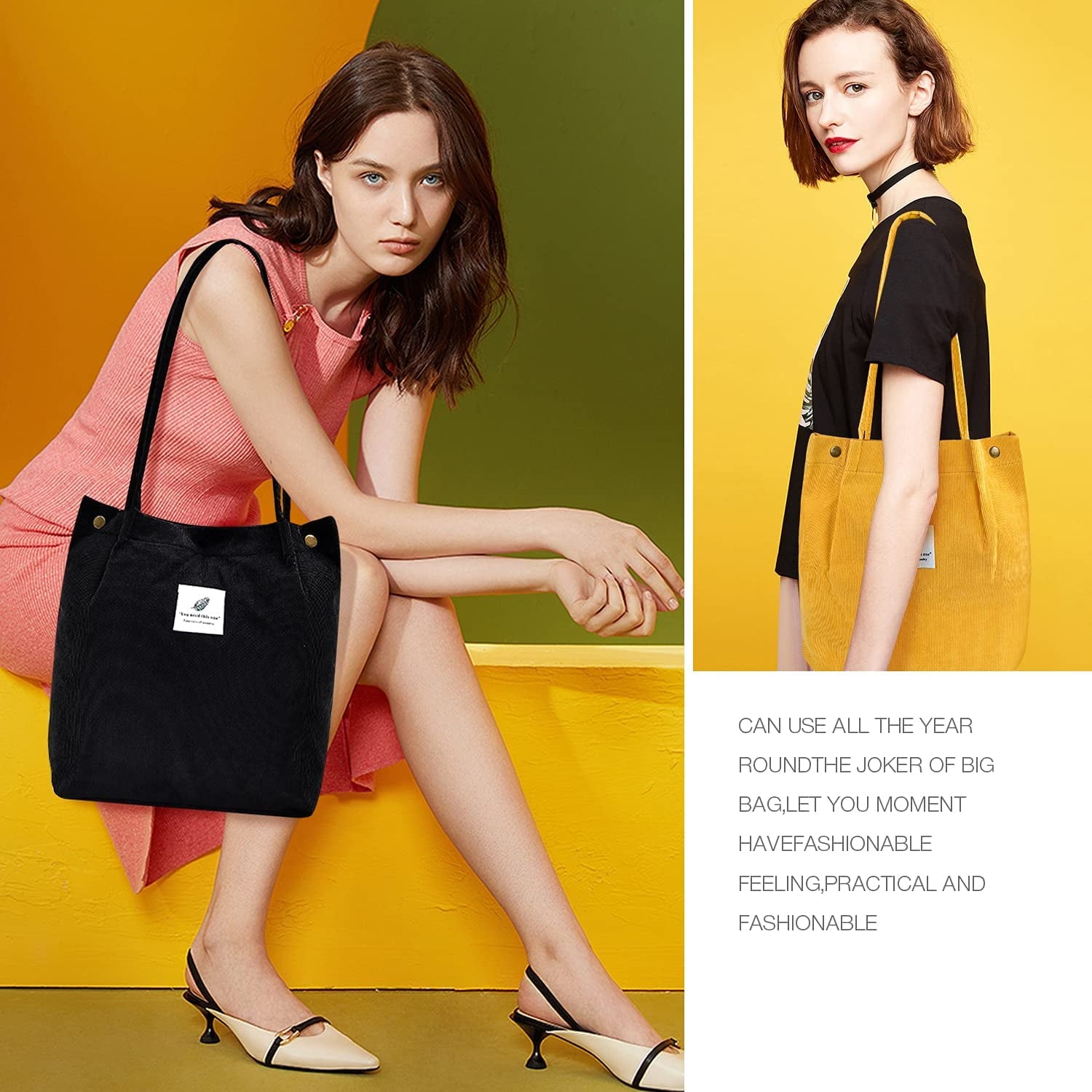 【HIGH QUALITY】This trendy tote bag is made of soft and durable corduroy. Lightweight, portable, durable and comfortable for shoulder or hand taking.Corduroy tote bag for women can be used repeatedly for a long time.
