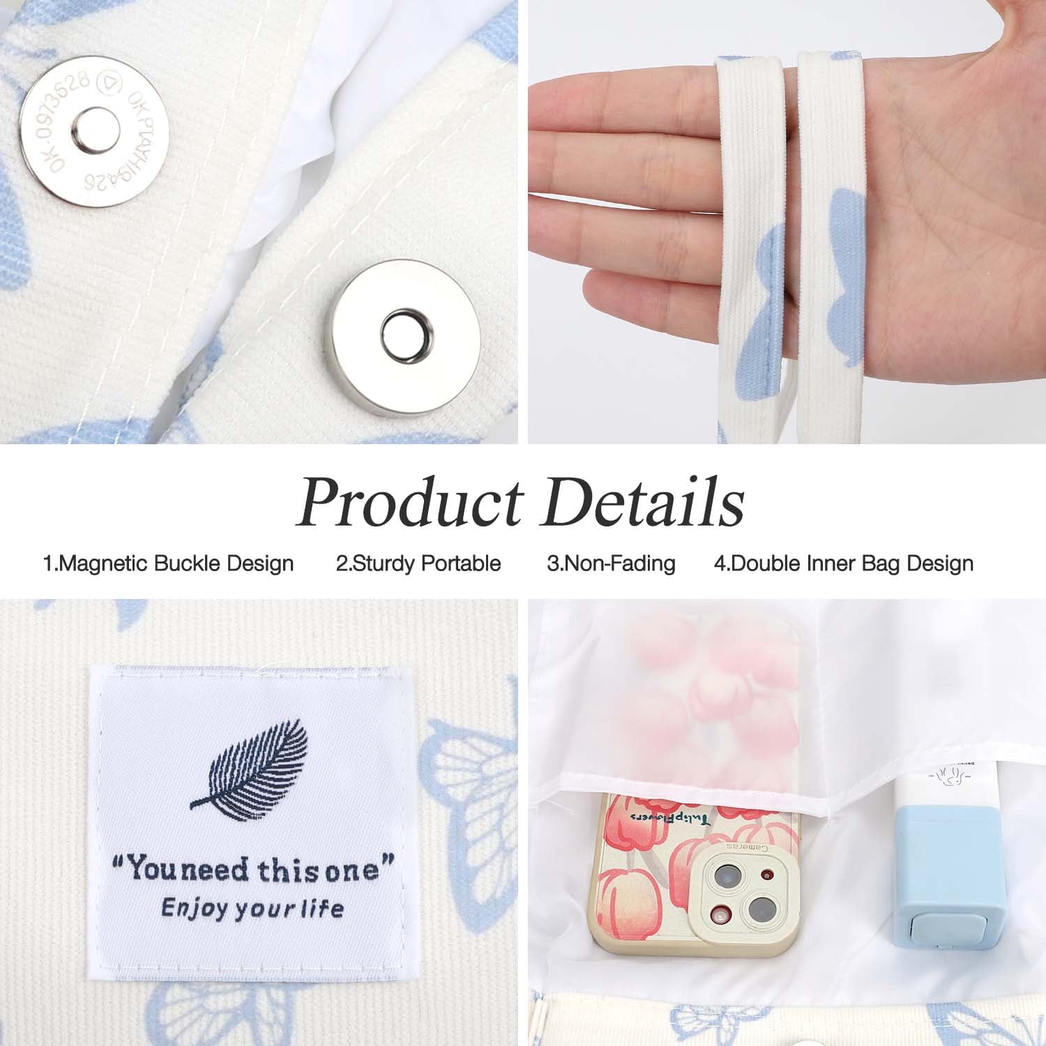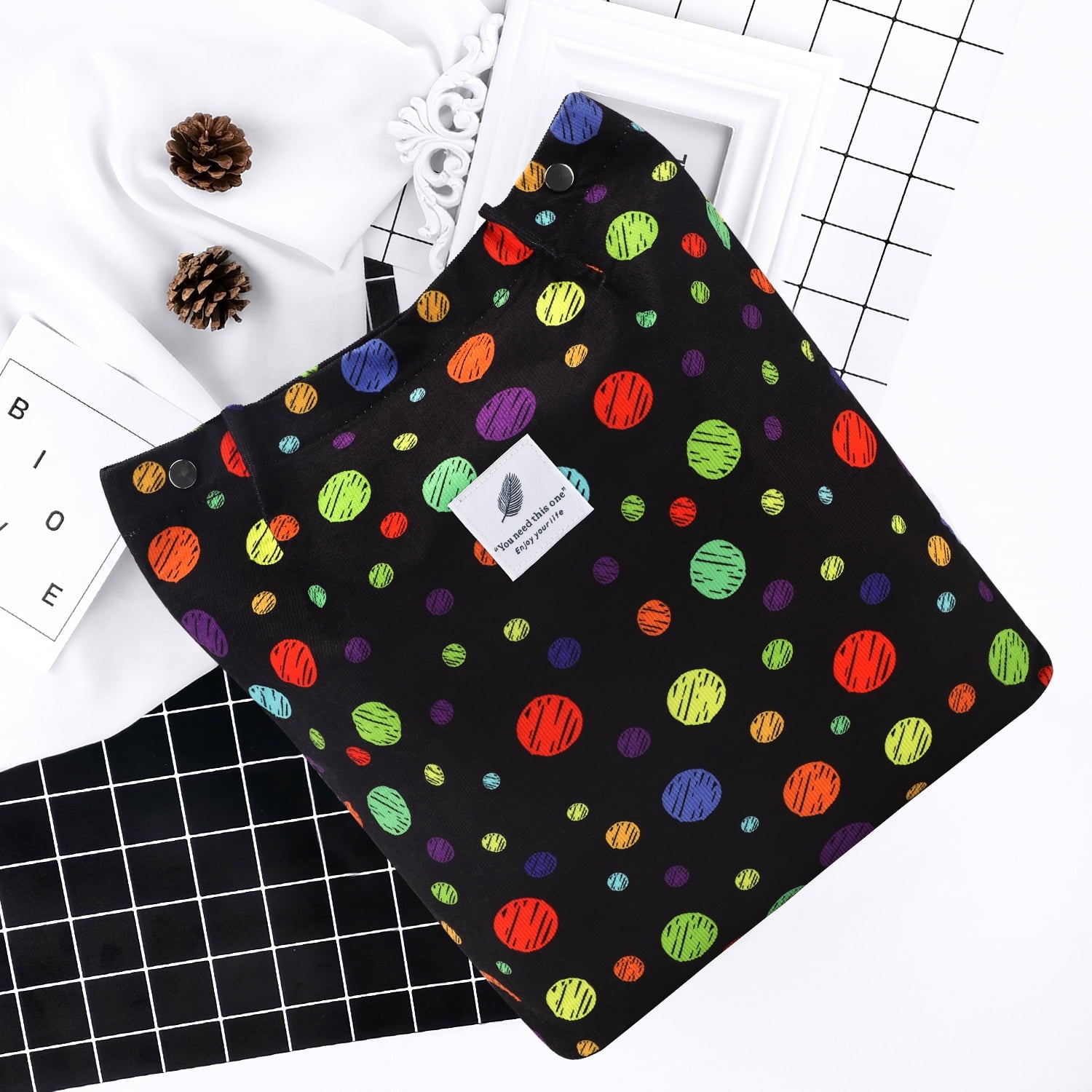 The tote bag aesthetic can be machine-washed and line-dried (no dryer, please), so no worries if it gets soiled.