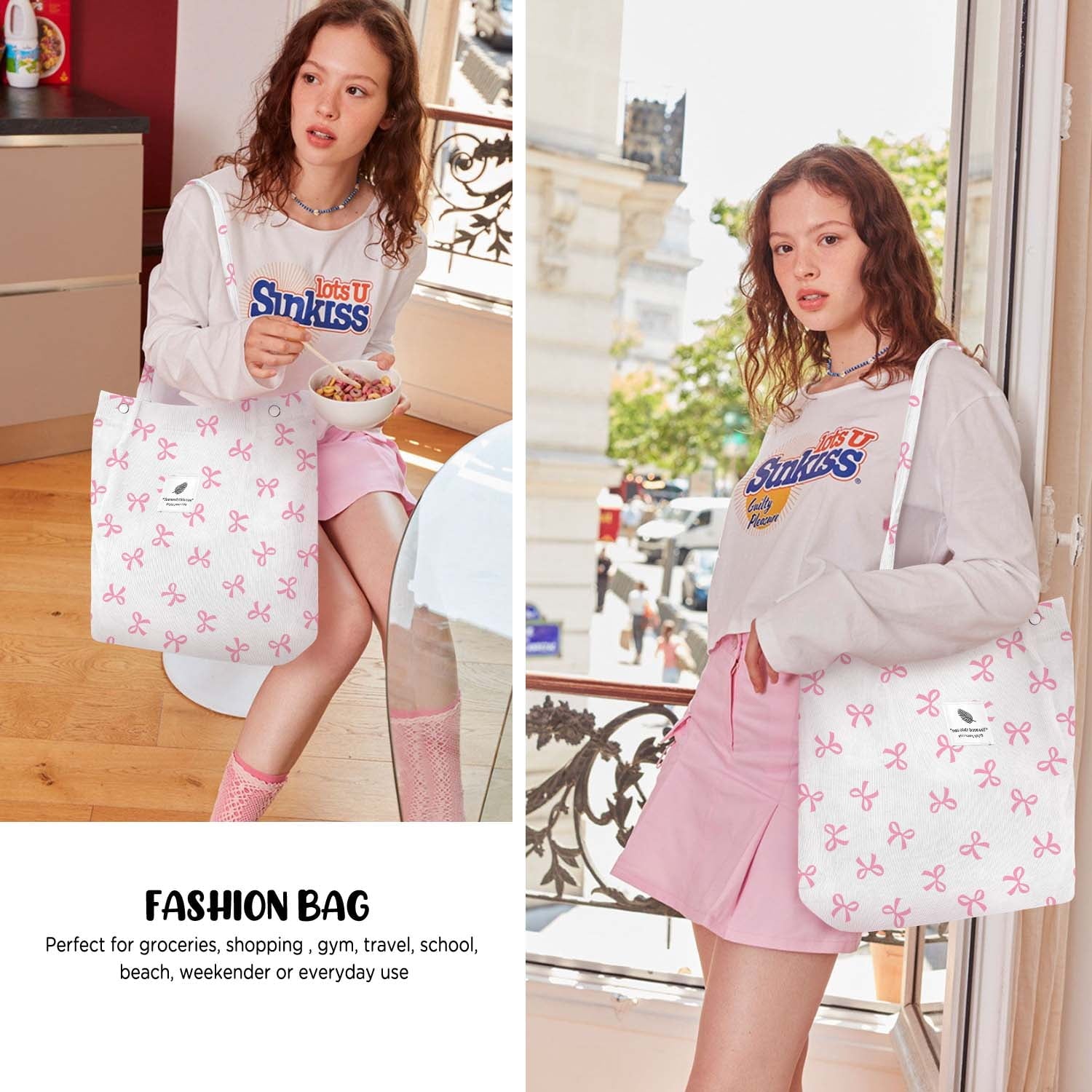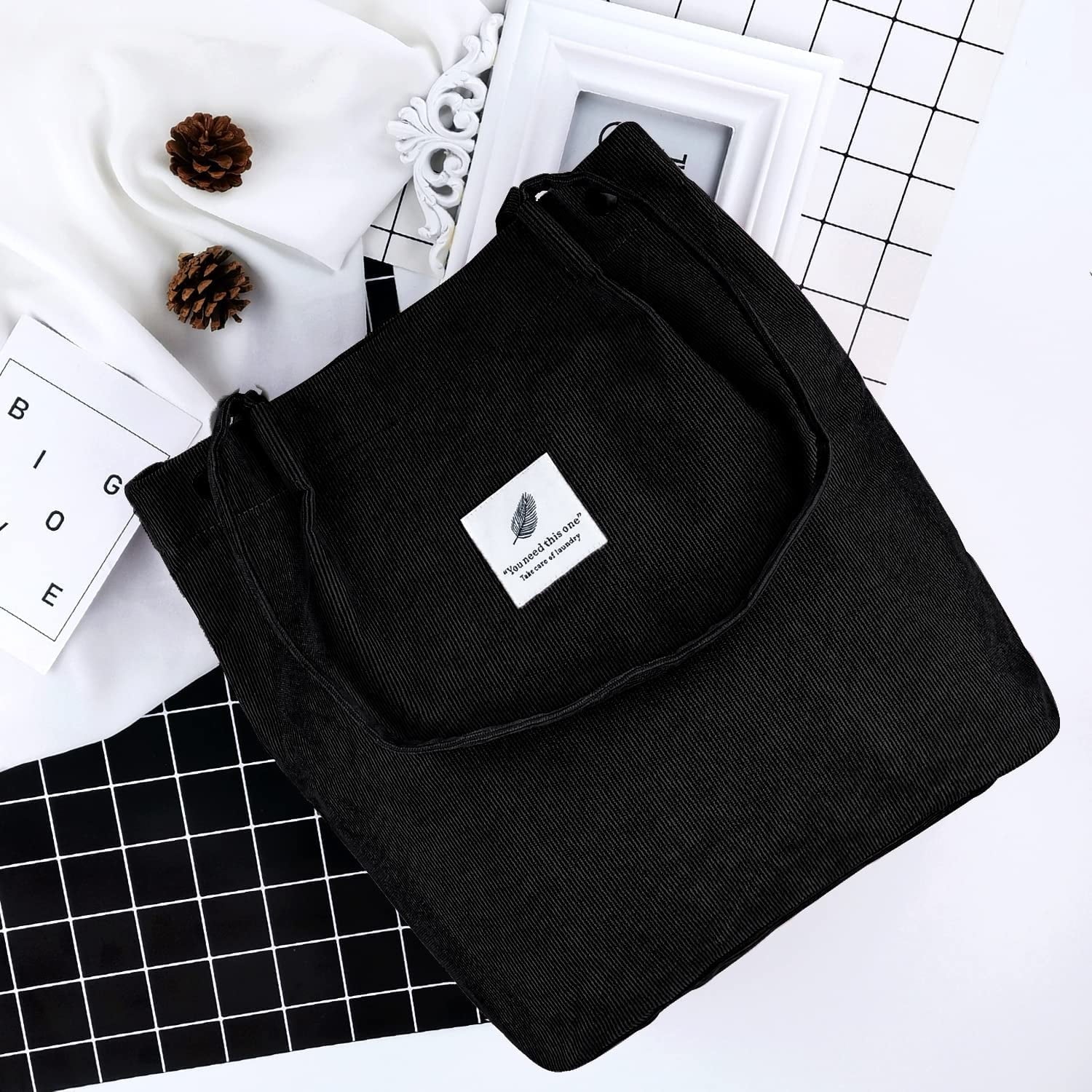 【EASY TO WASH】The cotton reusable tote bag aesthetic is both hand wash and machine washable, not fading, Corduroy tote bag maintain bright colors even multiple use. Soft texture and environmentally friendly.
