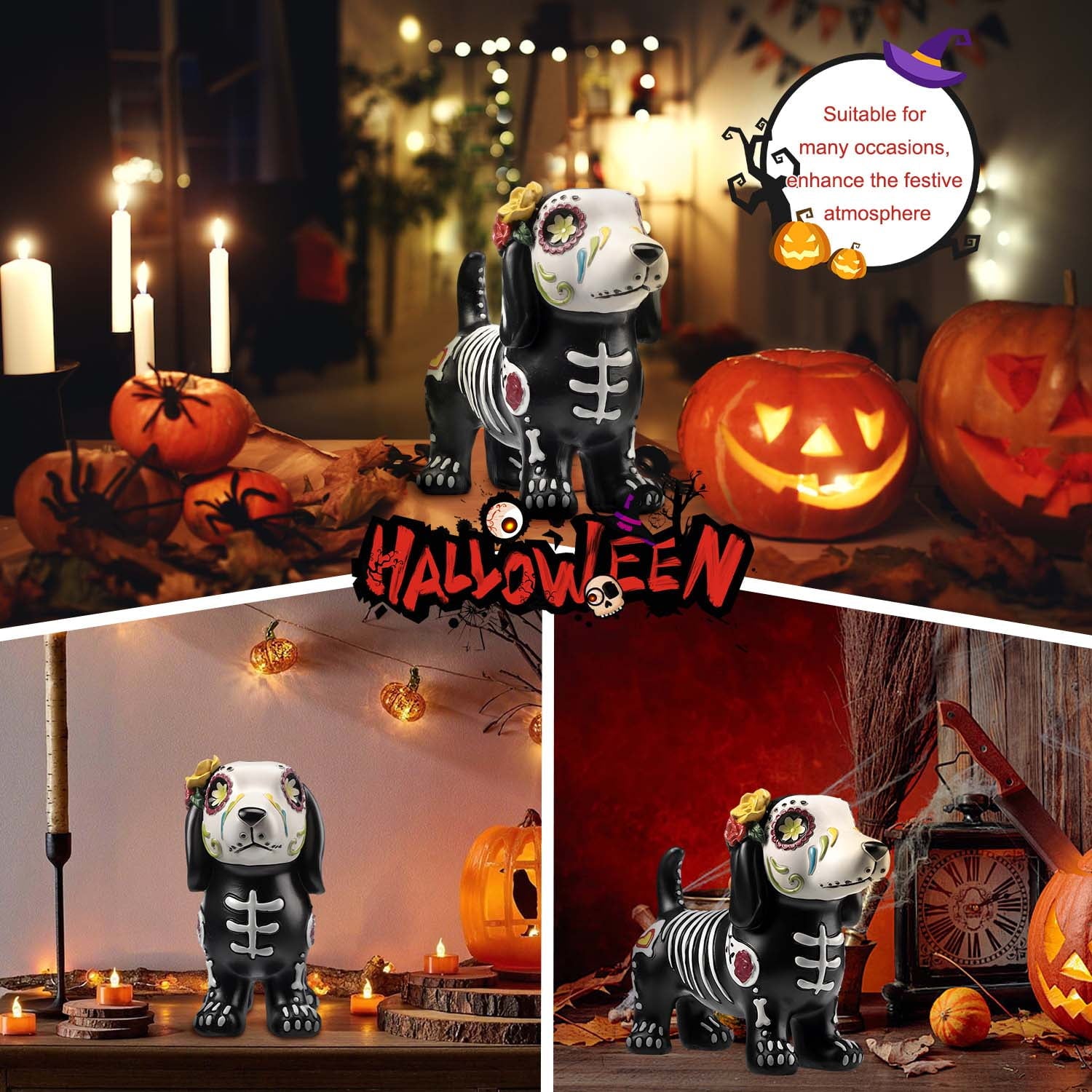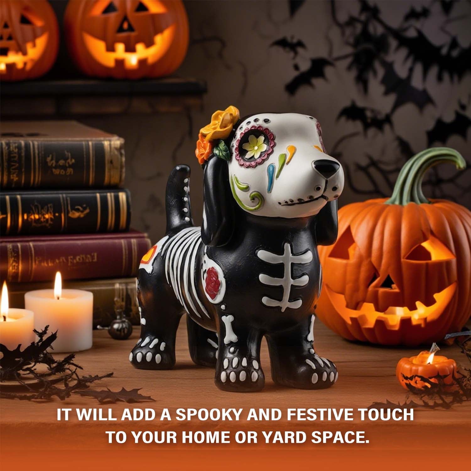 Display it solo or with other halloween figurines to create a festive scene on a table, shelf, or entryway. Its vibrant floral detailing and unique silhouette make it ideal for complementing both Halloween decor and Day of the Dead decorations alike -