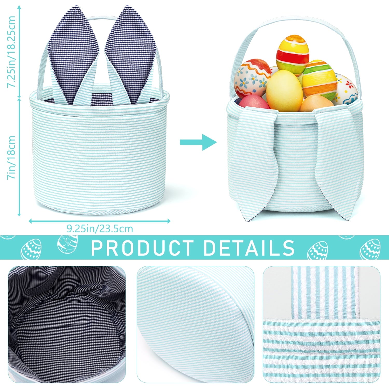 Ayieyill Easter Basket, Easter Bunny Baskets for Kids with Cute Rabbit Ears Stripe, Easter gift baskets