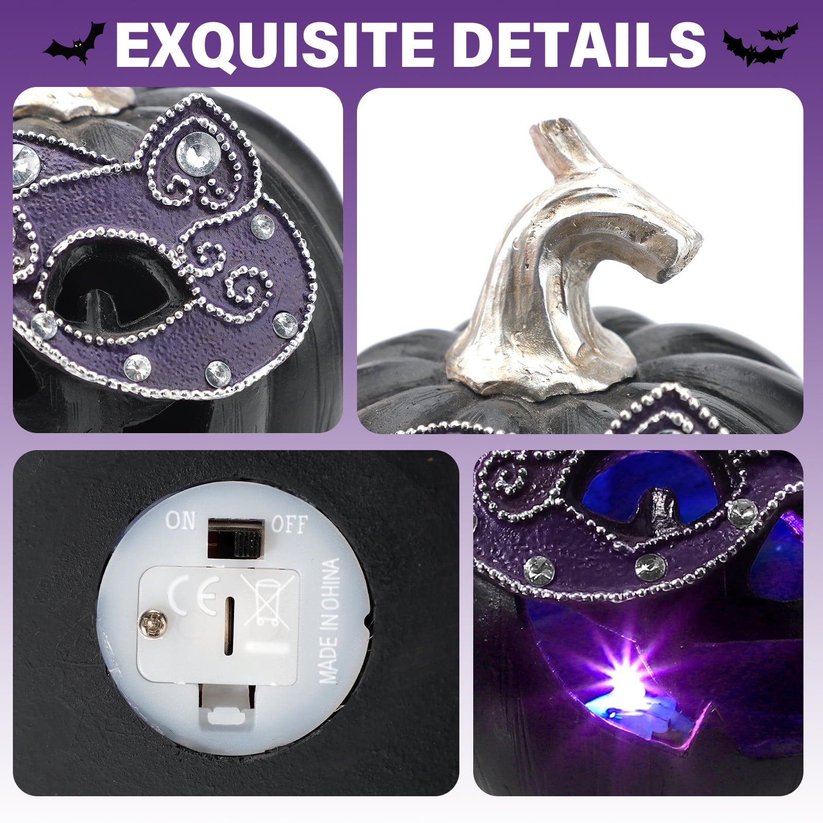- EYE-CATCHING MASKED DESIGN: This resin light up pumpkin figurine features a spooky yet playful masked face with exaggerated eyes and bold lines adding a unique twist to your halloween decor whether you place it alone or pair it with other halloween pumpkin decorations