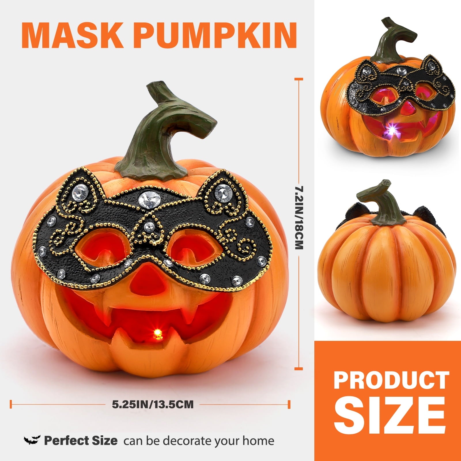 Ayieyill Halloween Pumpkin Decorations Light Up Pumpkin Figurine with Mask Halloween Decor for Home and Party Display