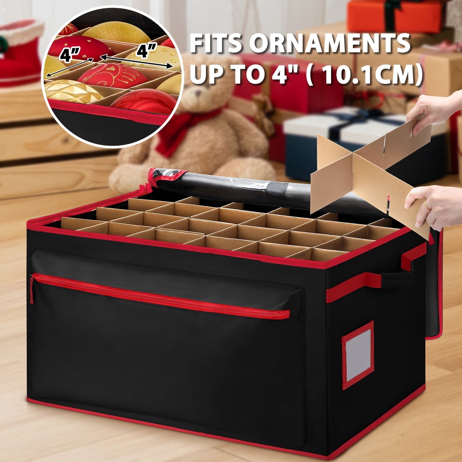 LARGE SIZE STORAGE BOX: Each tray can be customized to hold up to 24 ornaments. Store a maximum of 72 ornaments that are 4 inches tall by almost any dimension in width. Dimensions 27” x 19” x14”.