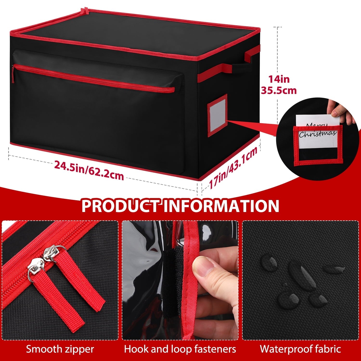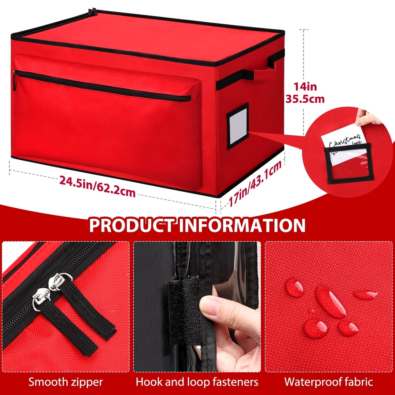 Premium Christmas Ornament Storage Box - Heavy Duty 600D/ Inside PVC Liner Deluxe Christmas Ornament Storage Box - Heavy Duty 600D/ Self Standing Frame Christmas Ornament Storage Box w/ Side Slots for Long Ornaments, Decor & Candles Christmas Ornament Storage Container Box with Dividers w/2 Trays & Carry Handles Premium Large Holiday Ornament Storage Box w/ Front Open Panel & Handled Trays Clear Top Christmas Ornament Organizer to Secure Your Favorite Seasonal Décor