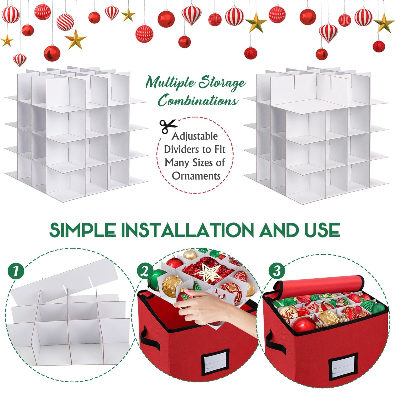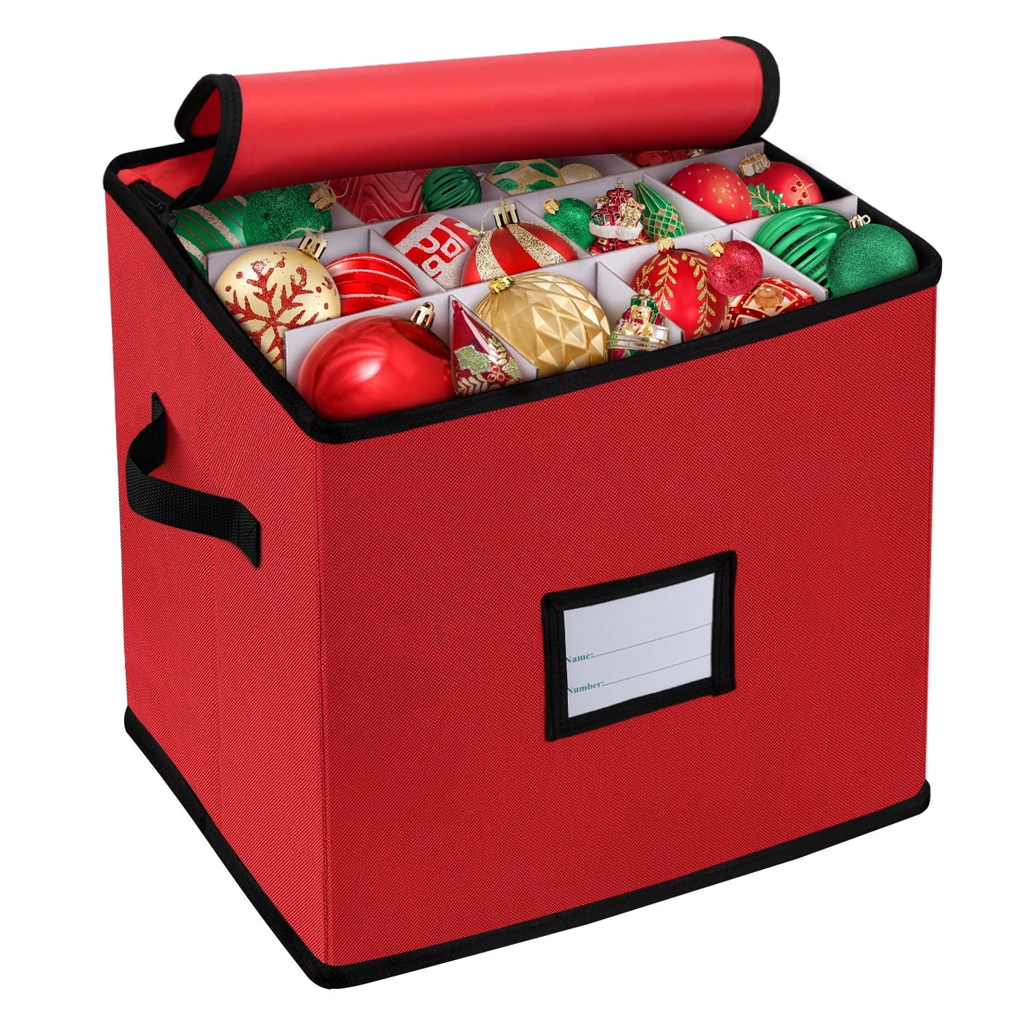 Ayieyill Premium Red Christmas Ornament Storage Chest, Ornament Storage Box Ornament Organizer Holds 64 Balls w/ Dividers , (L) 12''x (W) 12''x (H) 12''