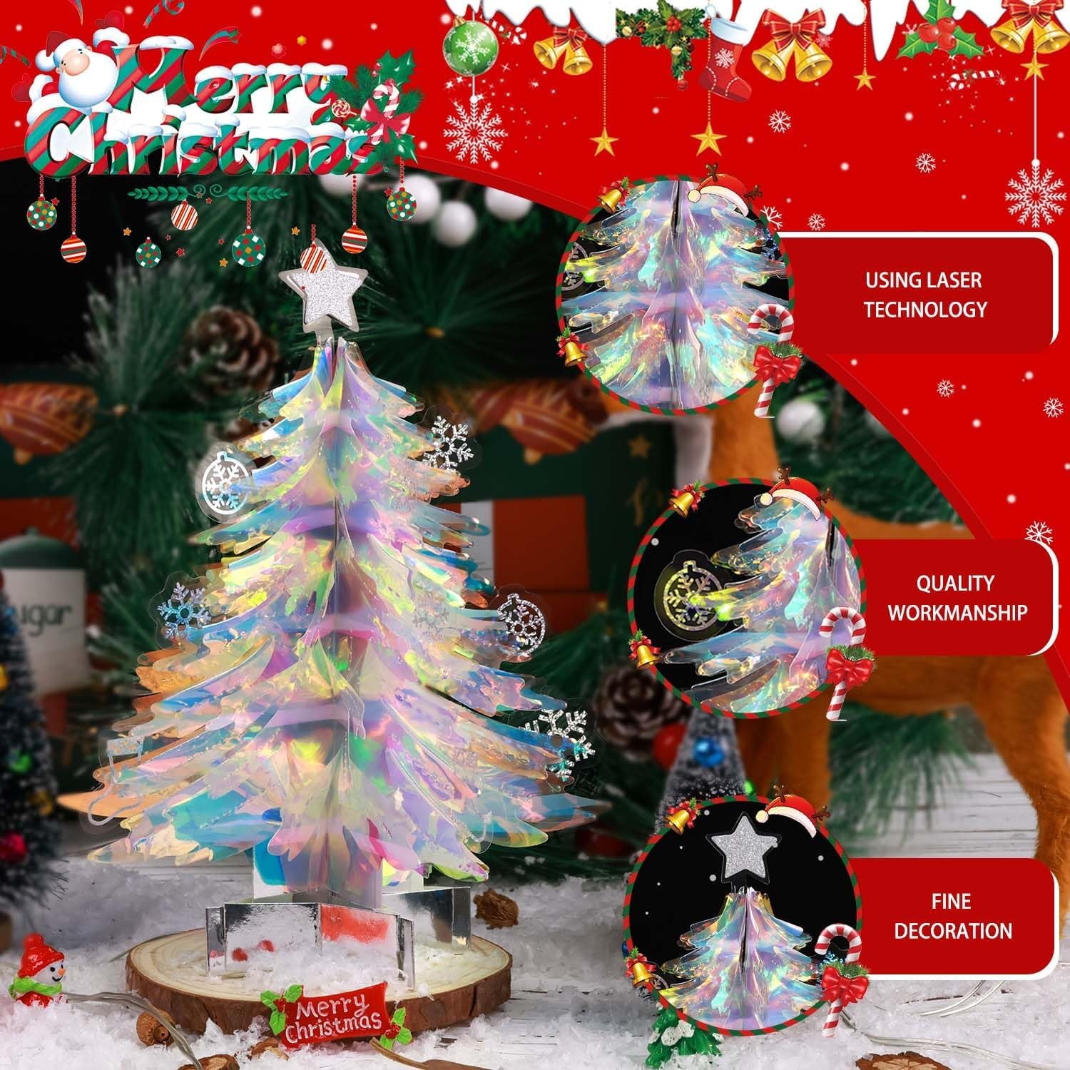 Reusable ornaments:The paper trees cards pop up is crafted from high quality colored card paper, exquisite workmanship that has long lasting keep, decor for your winter and Xmas once again!