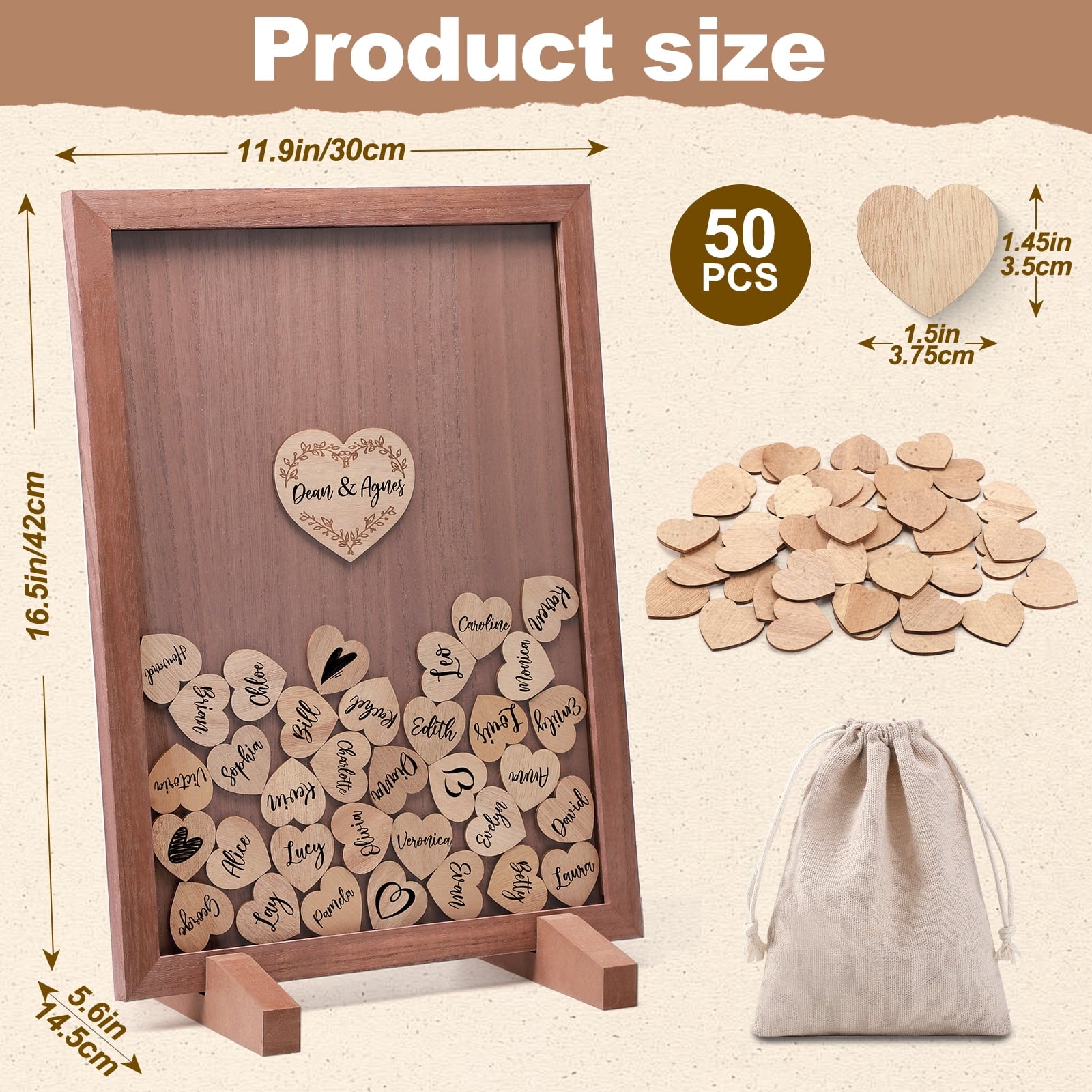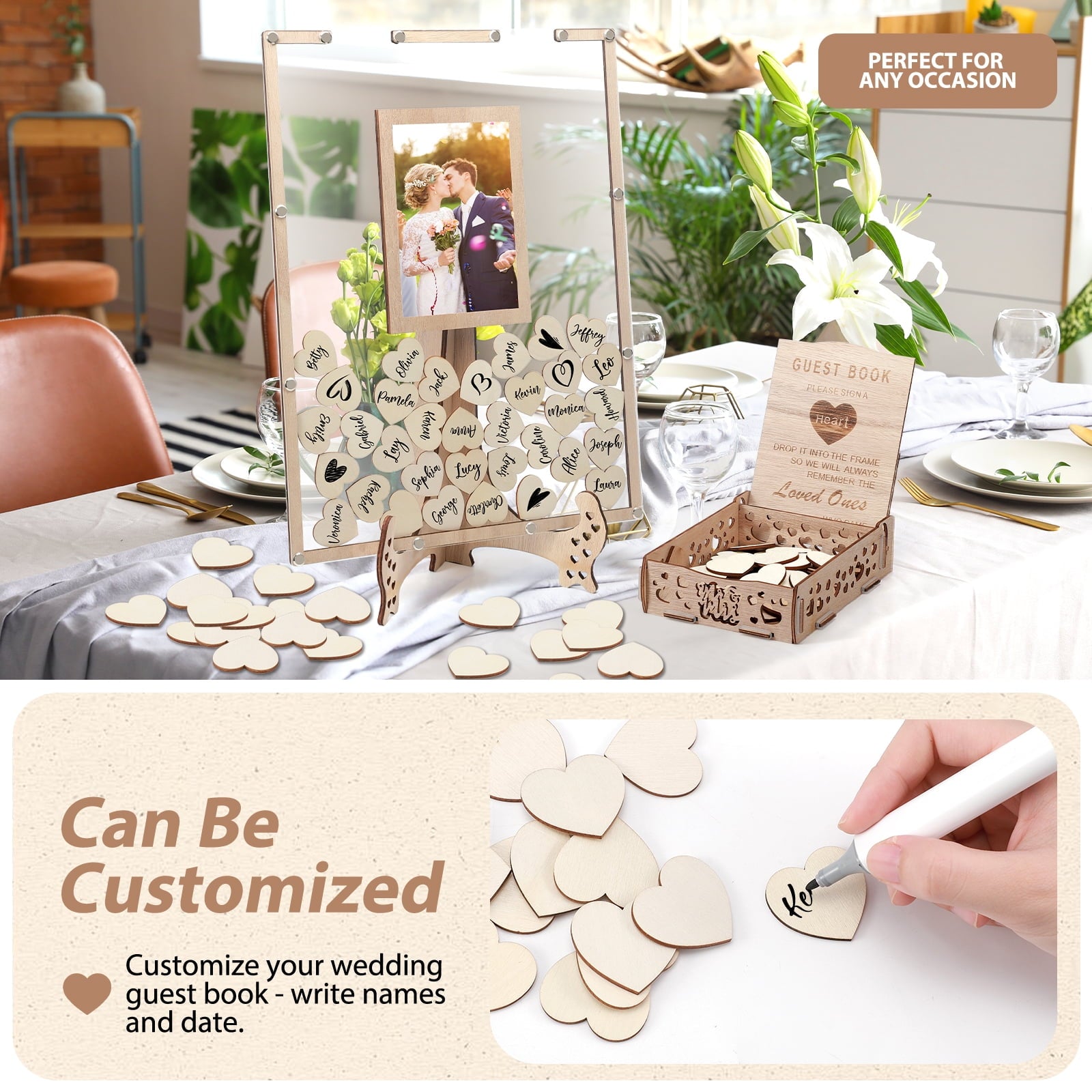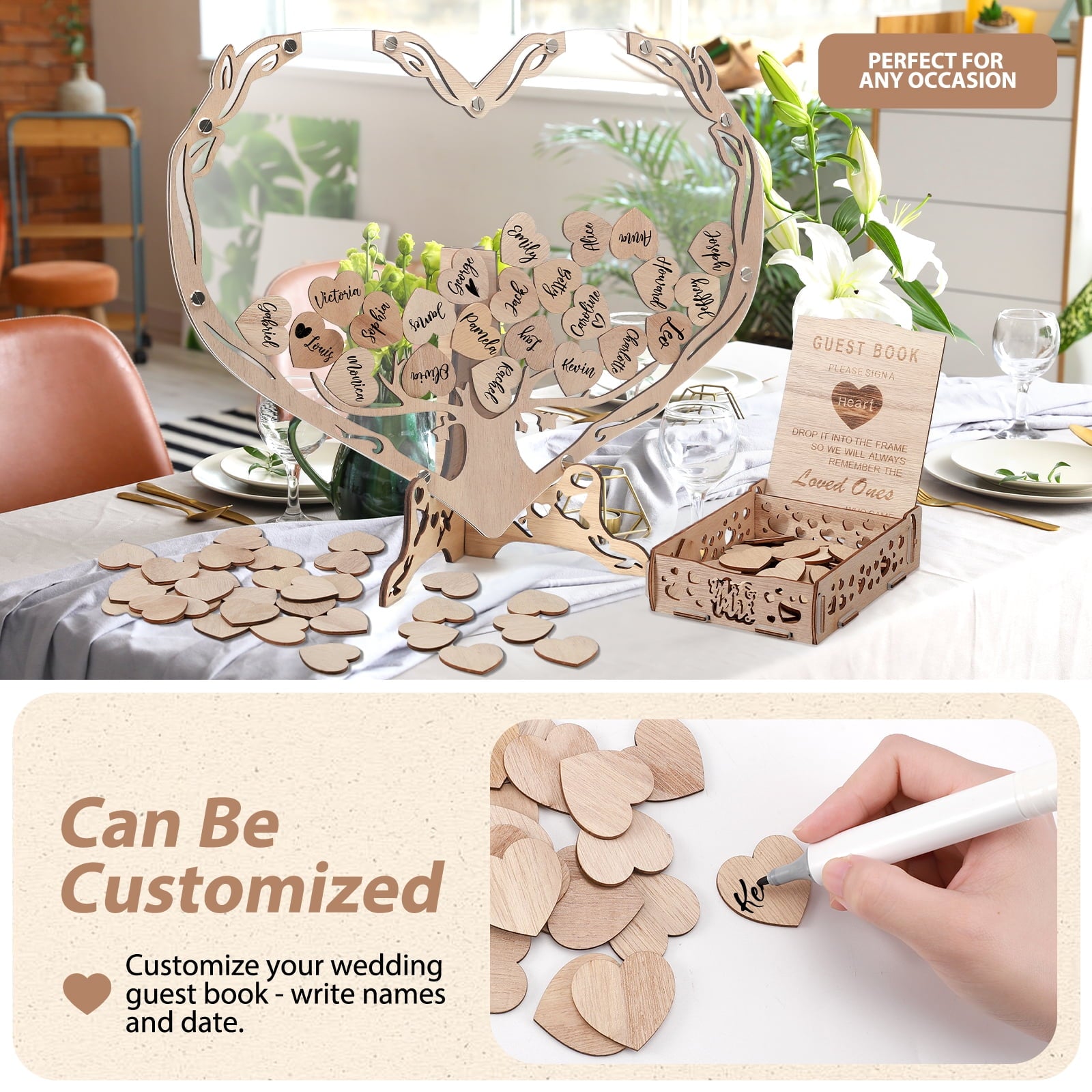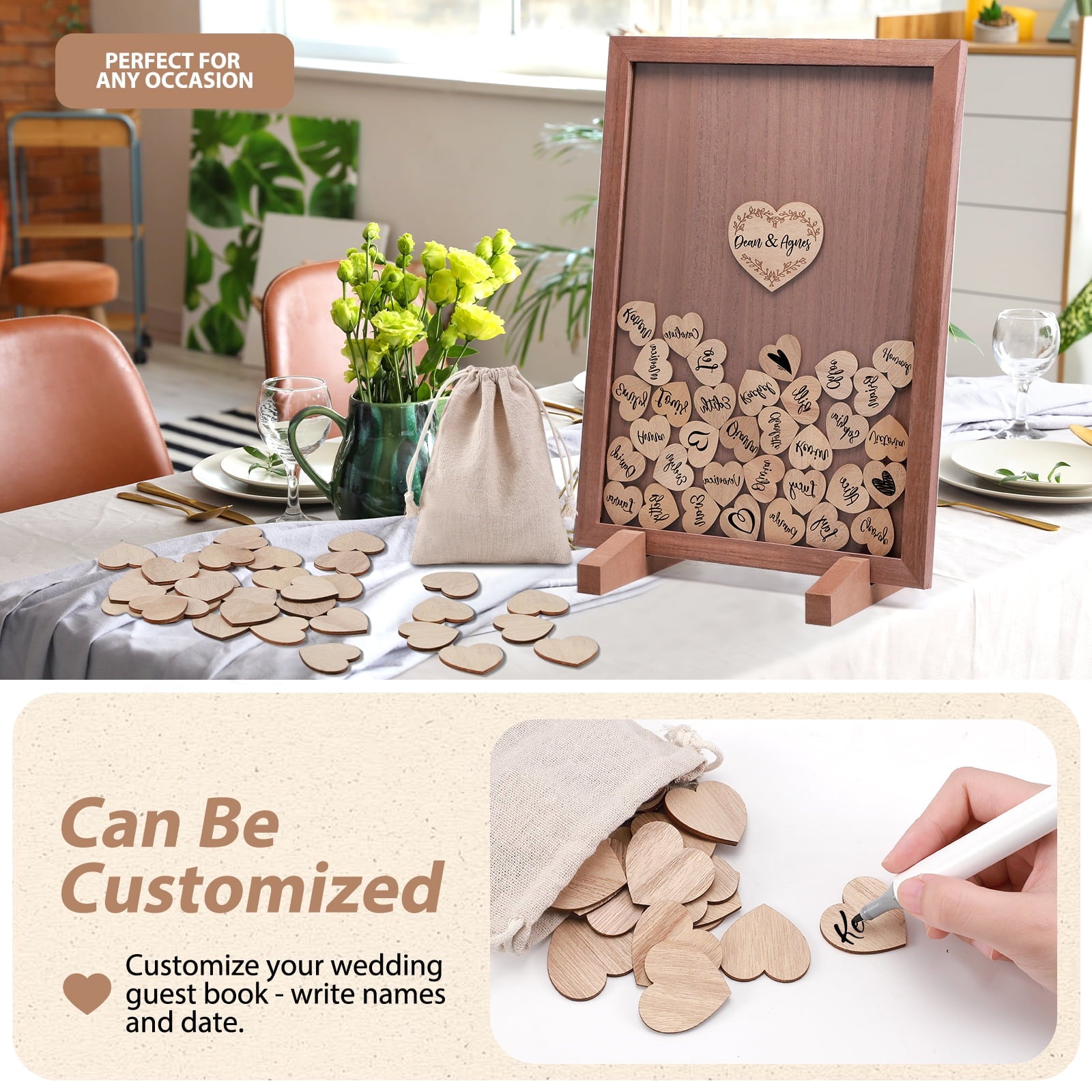 Ayieyill Personalized Wedding Guest Book Alternative, Guest Book for Wedding with 50pcs Wooden Hearts, Rustic Wedding Decorations for Reception and Ceremony Party