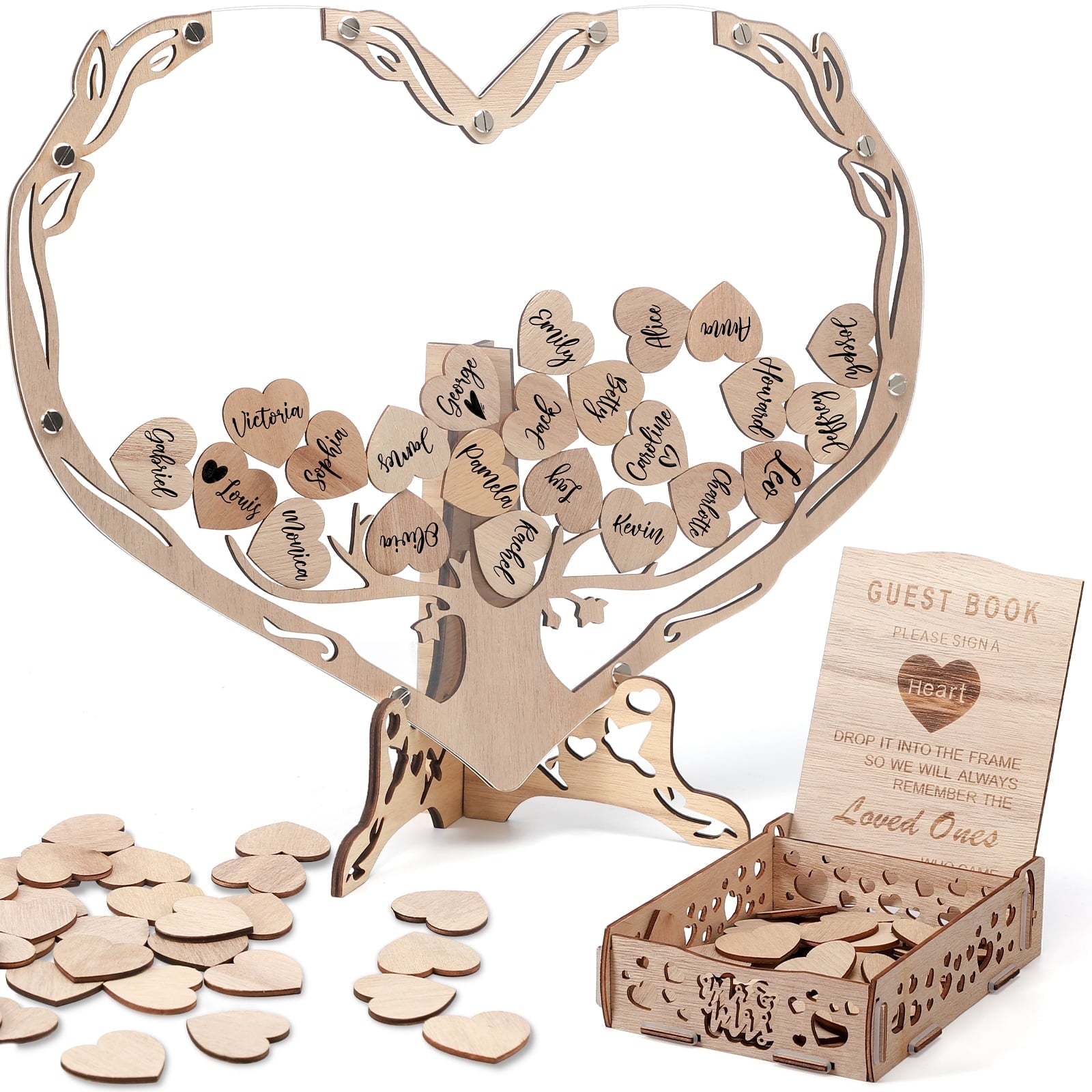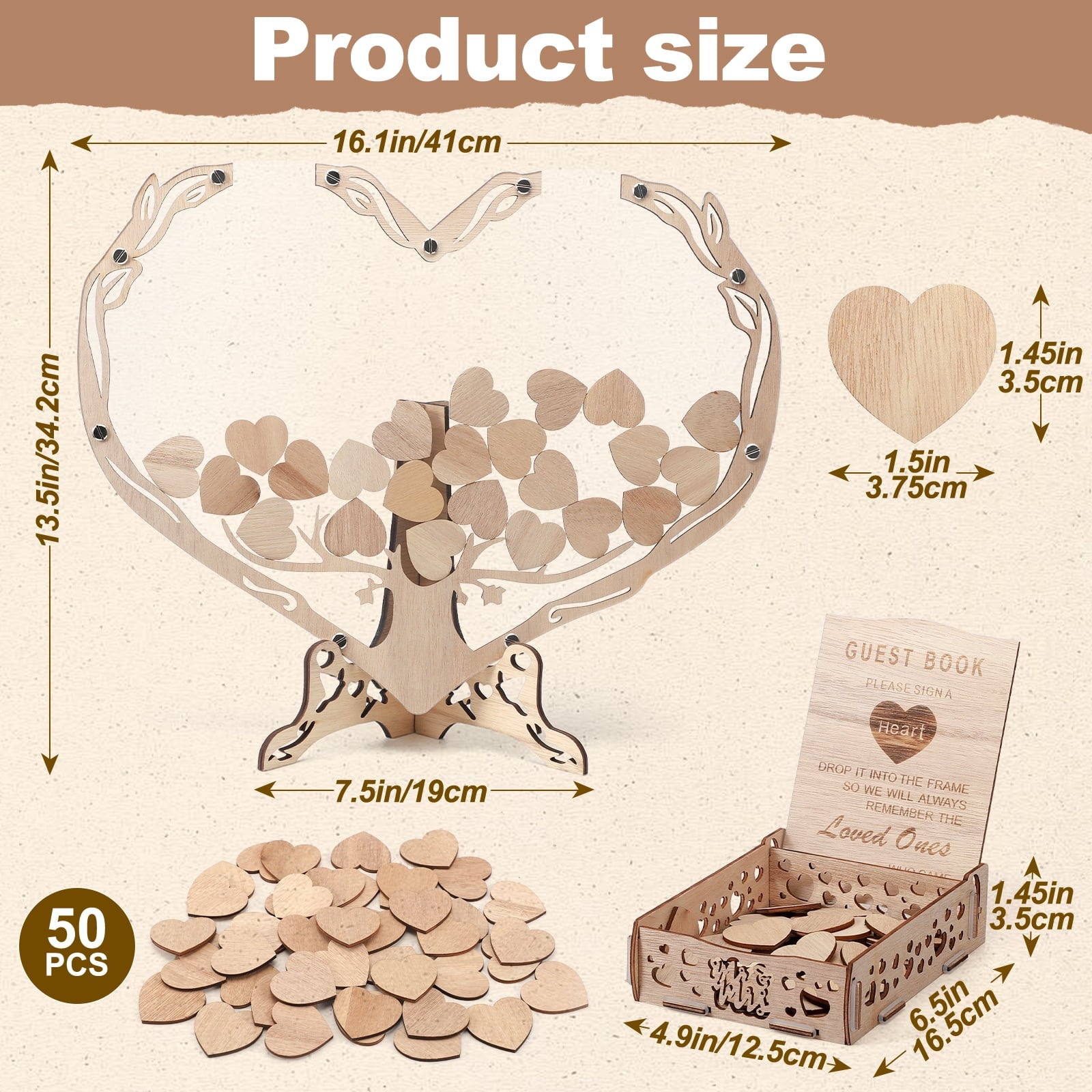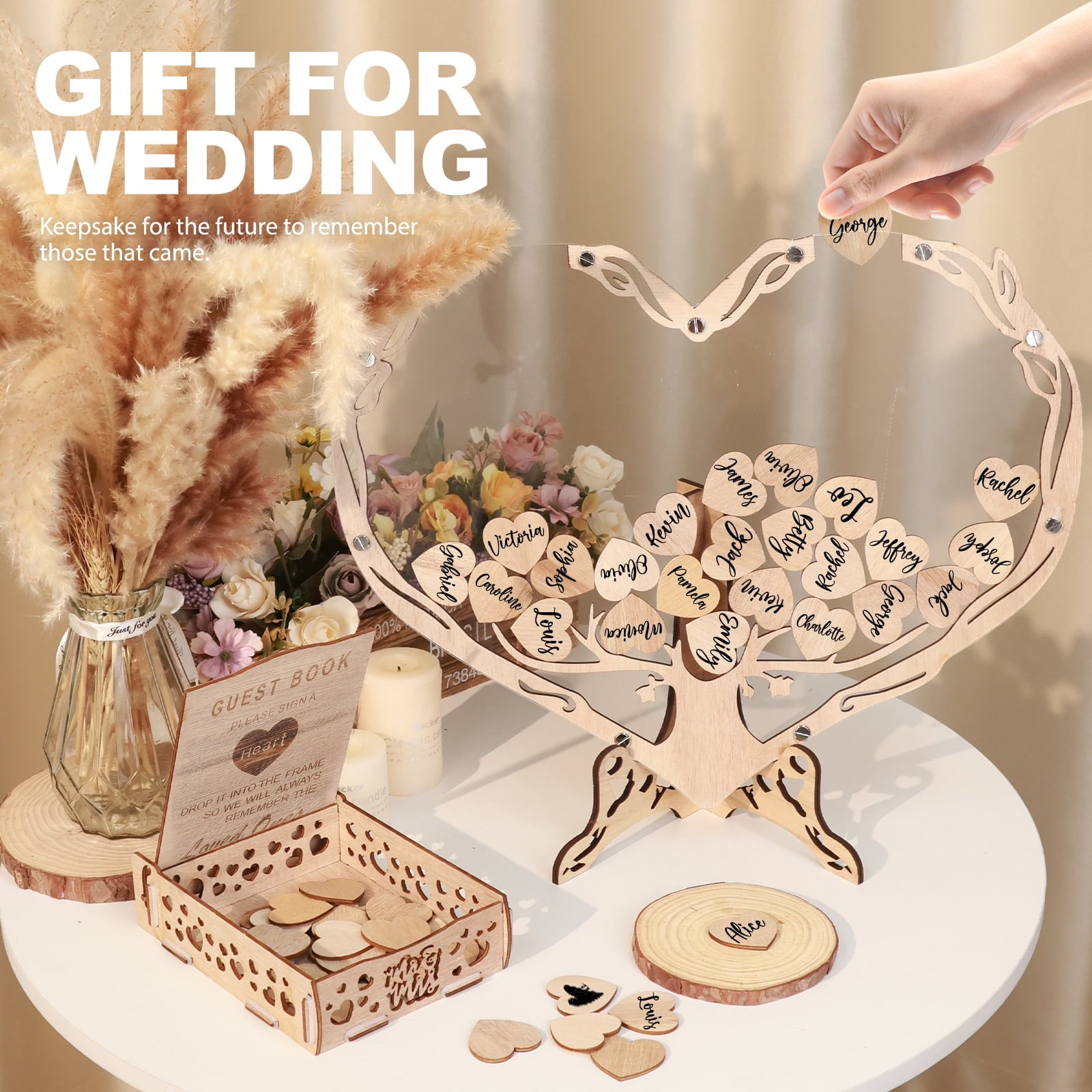 Ayieyill Personalized Wedding Guest Book Alternative, Guest Book for Wedding with 50pcs Wooden Hearts, Rustic Wedding Decorations for Reception and Ceremony Party