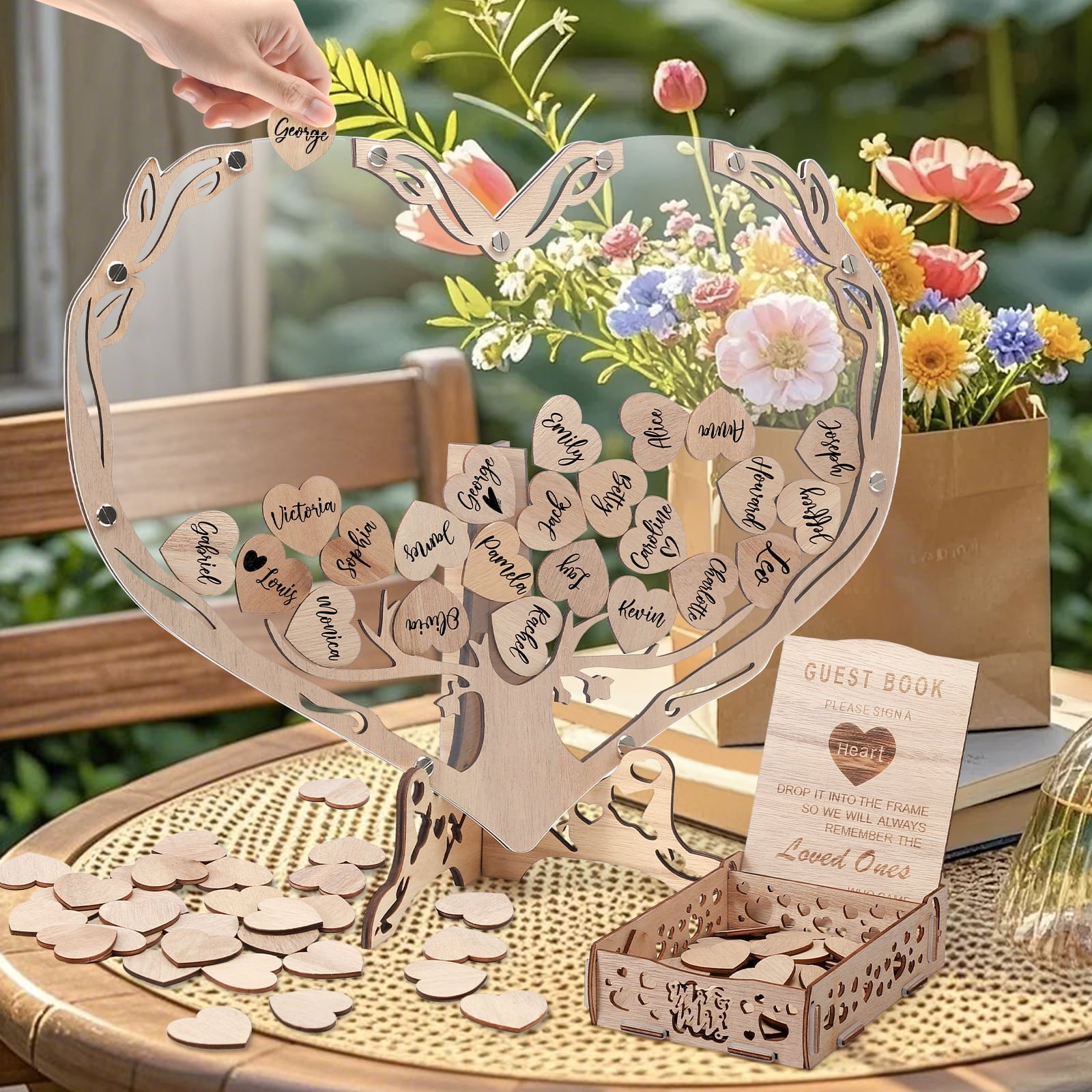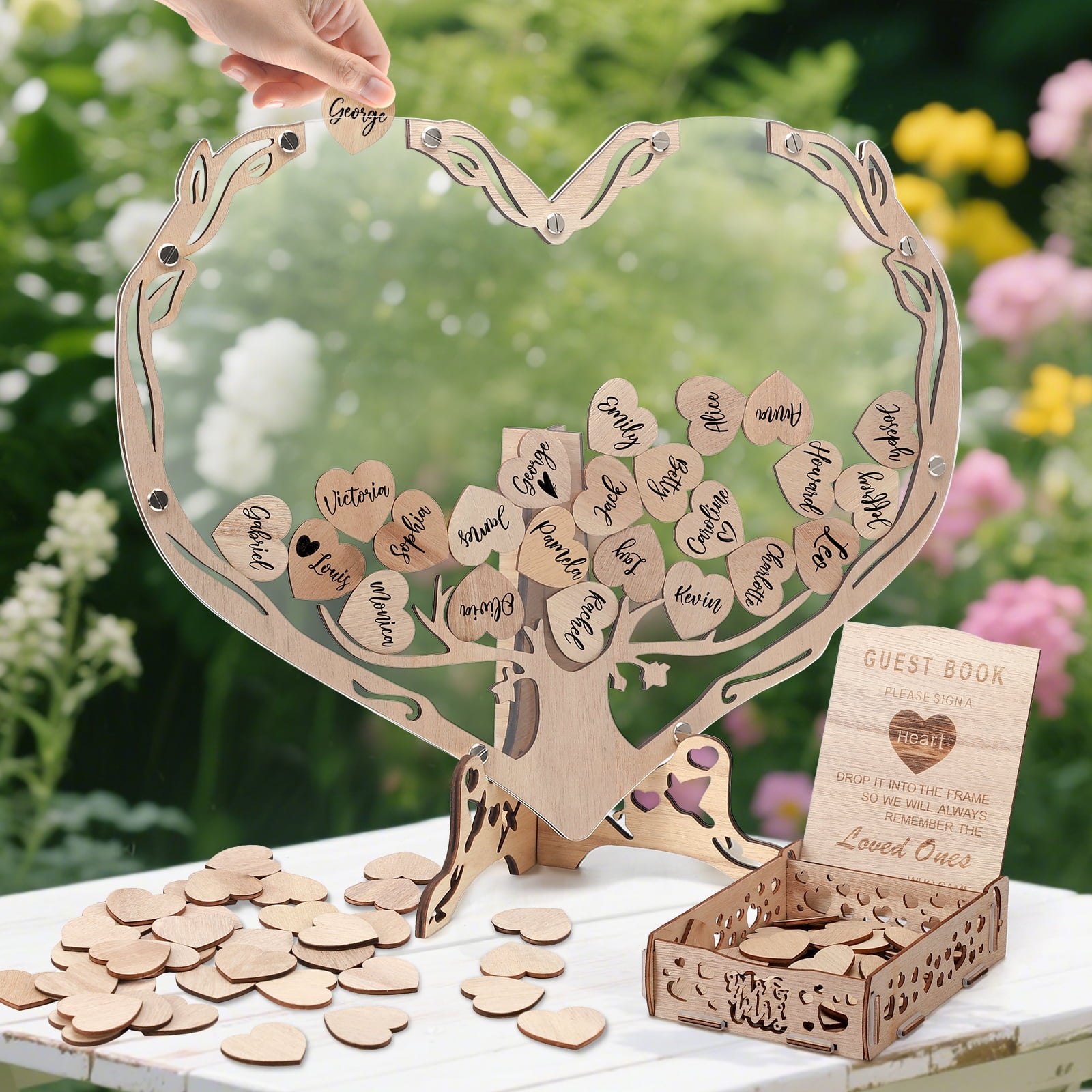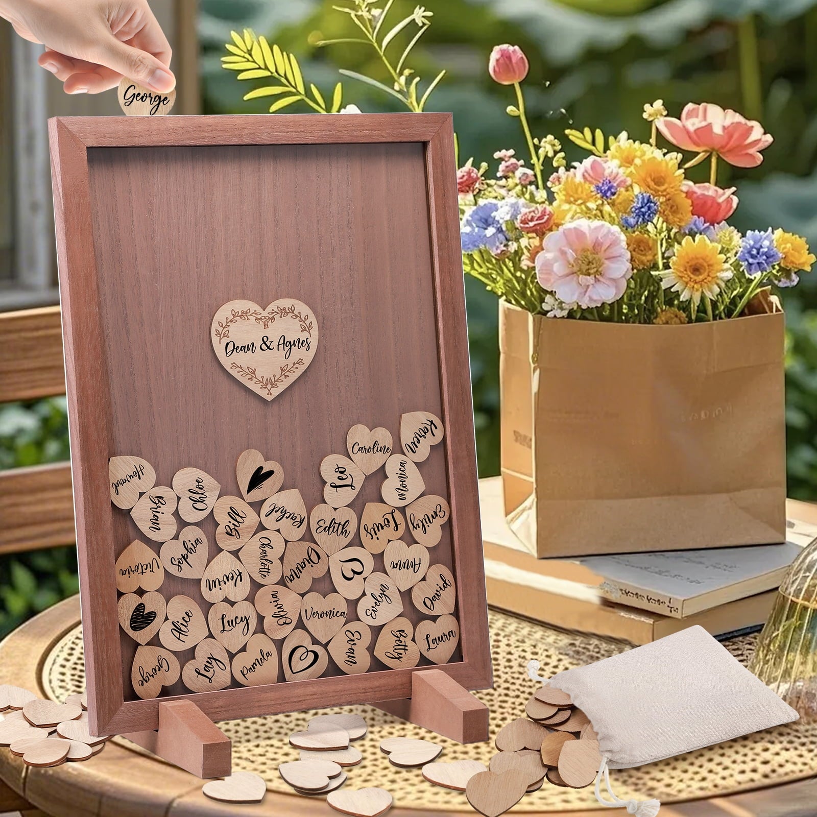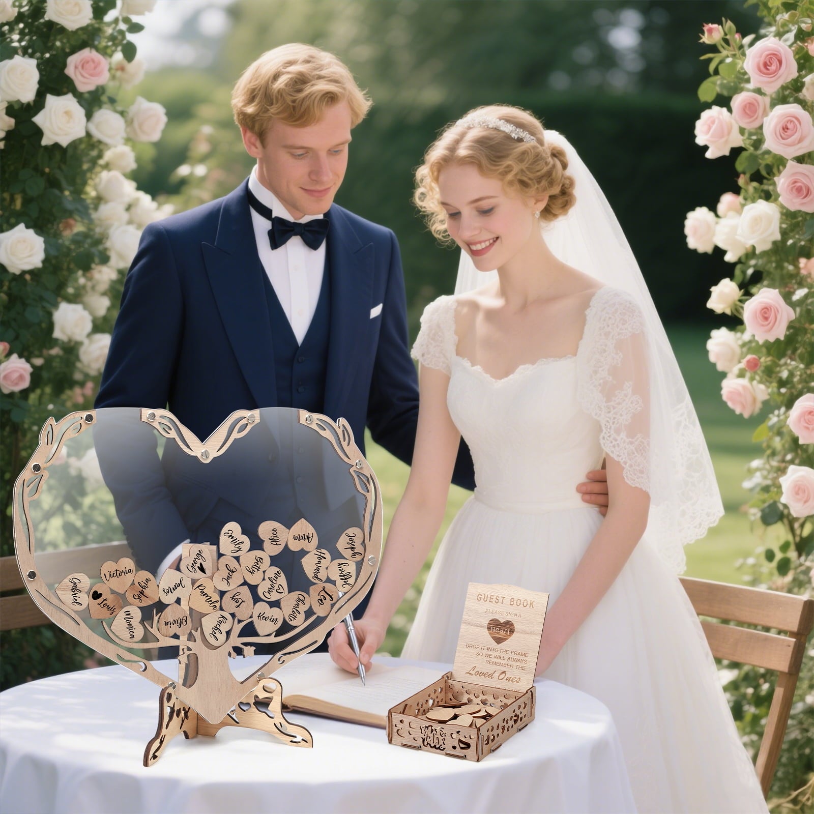 Ayieyill Personalized Wedding Guest Book Alternative, Guest Book for Wedding with 50pcs Wooden Hearts, Rustic Wedding Decorations for Reception and Ceremony Party