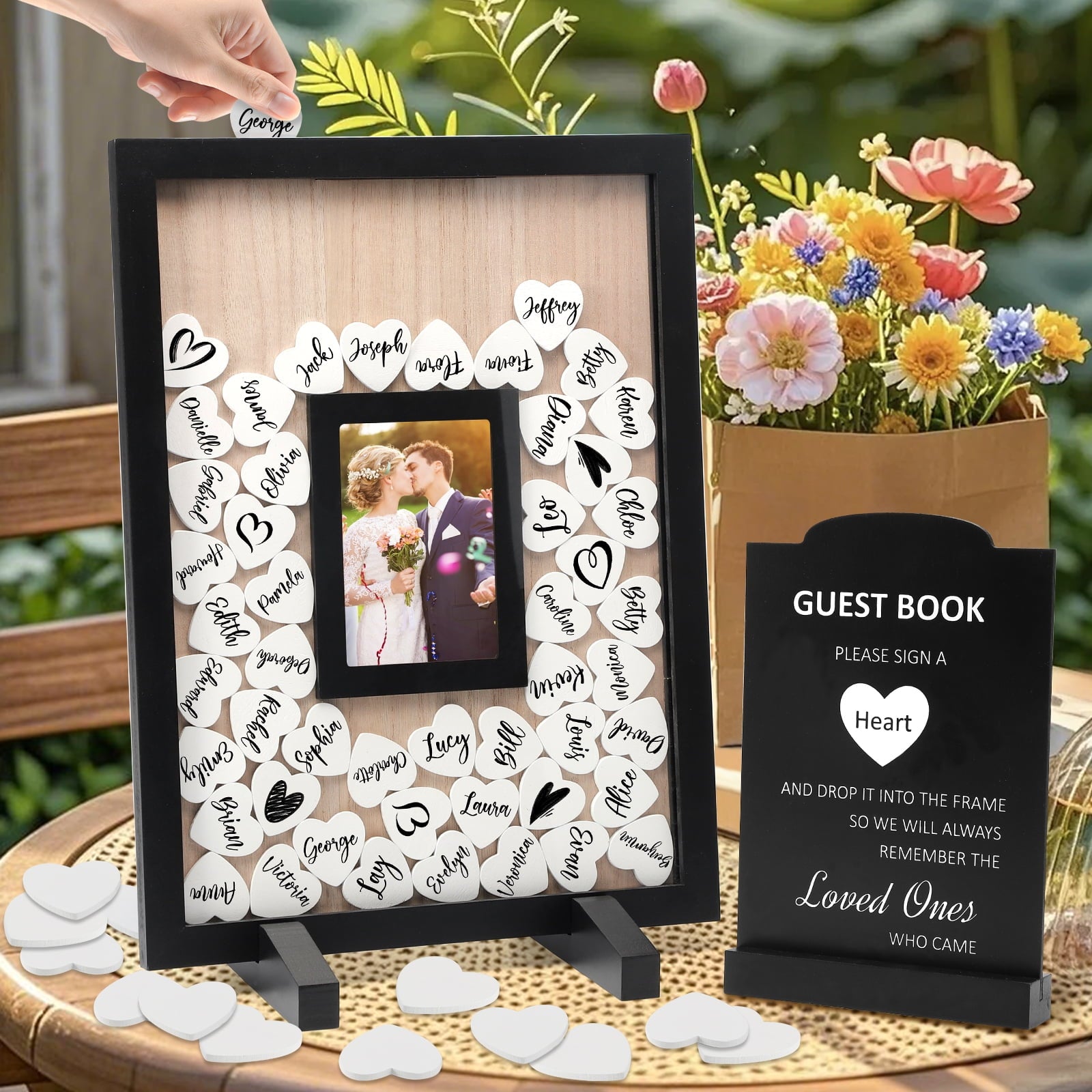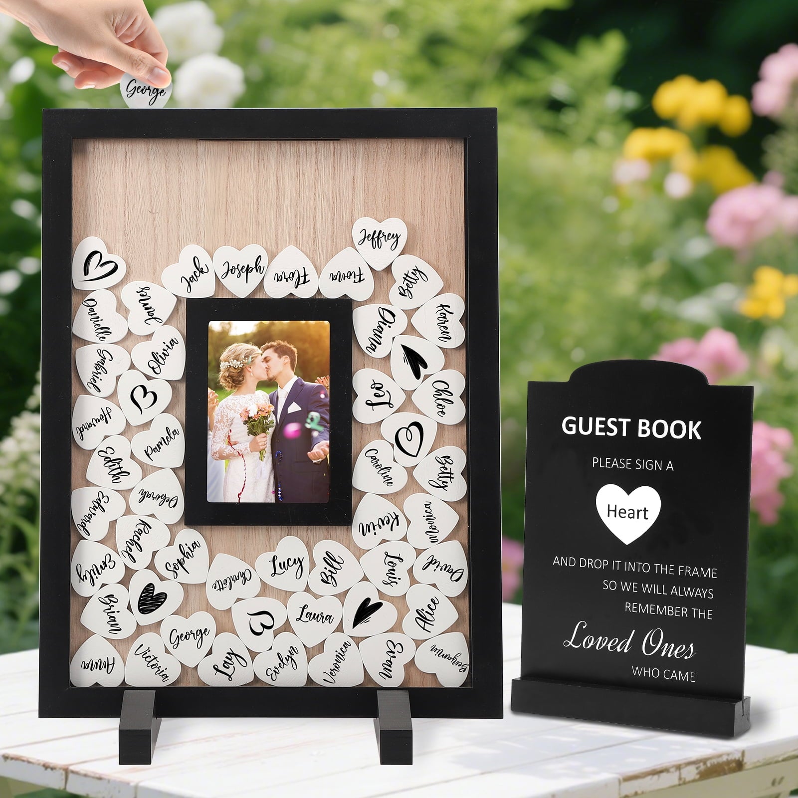 - Wedding Reception Decor: With a small photo frame in the alternative guest book, you can display your favorite photos at your wedding or other events, customize this wedding guest book frame with your personal touch. The back of the wedding guest book can be removed to change different photos to customize and match your wedding table decorations